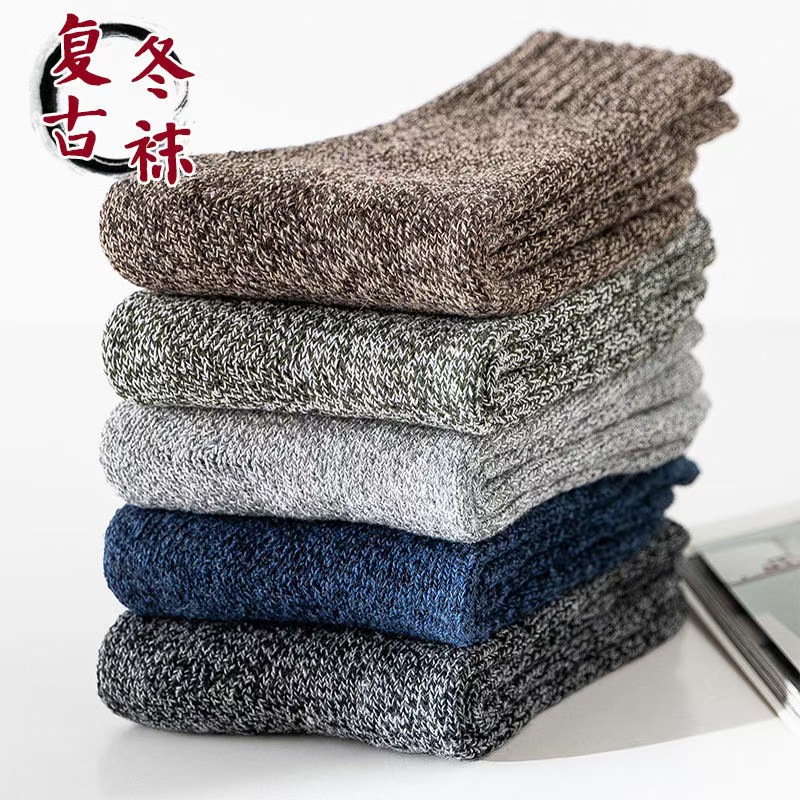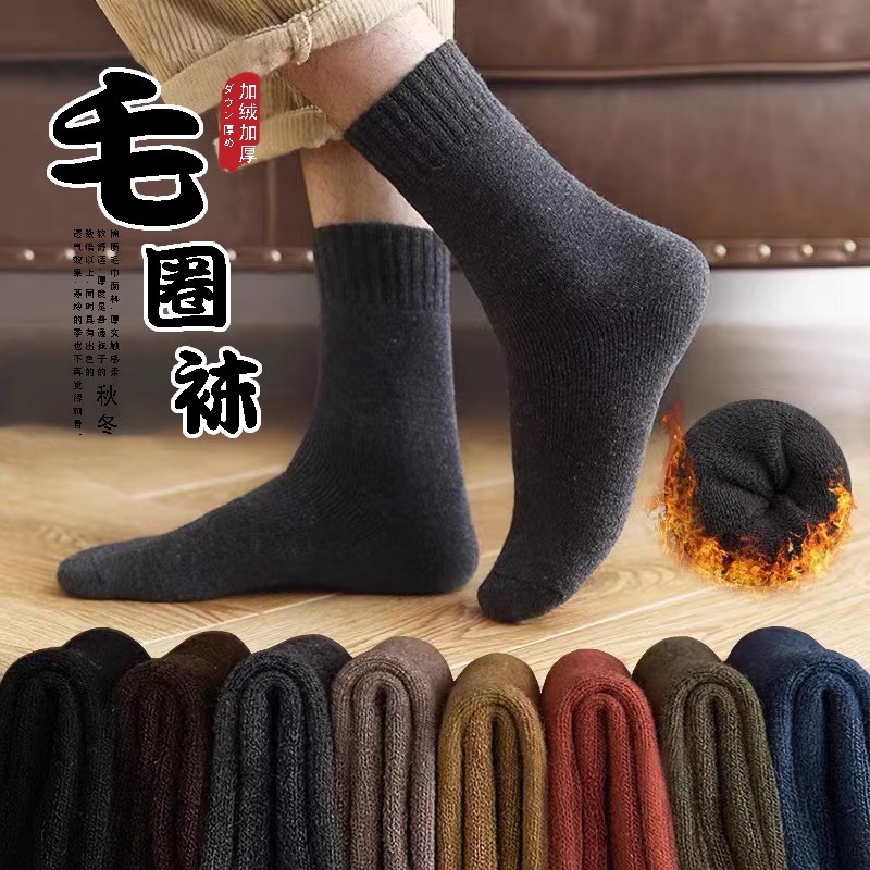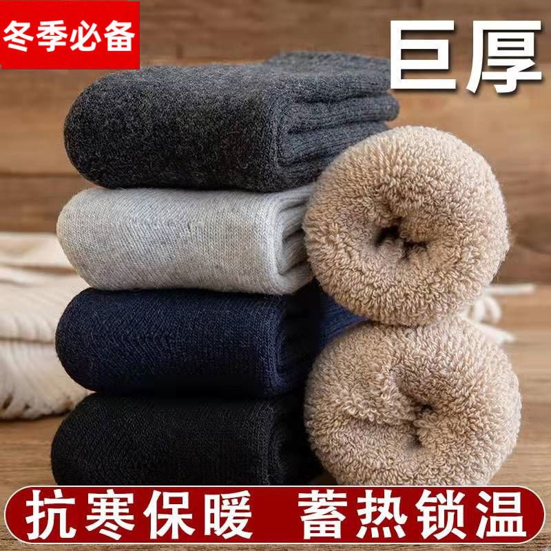 秋冬ウールソックスメンズミッドカーフソックスプラスベルベット厚く暖かいフロアソックス東北冬極厚テリーソックス