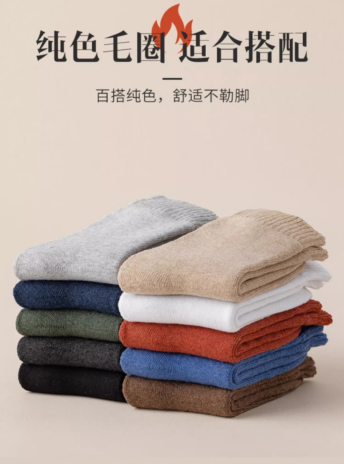 秋冬款加厚羊毛袜子袜中筒纯色休闲袜子男士款羊毛女士袜加厚保暖