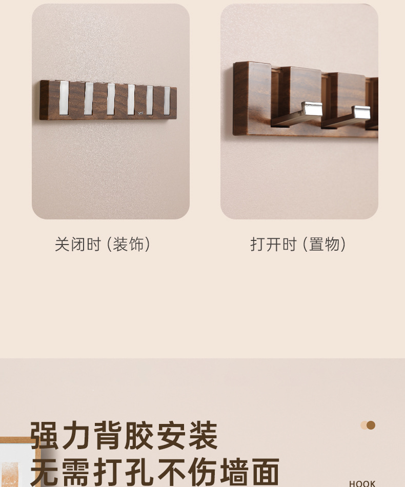 胡桃の木の扉の後でフックして穴を開けないで強力な荷重の壁の上で壁掛けして服の鍵を収納します。