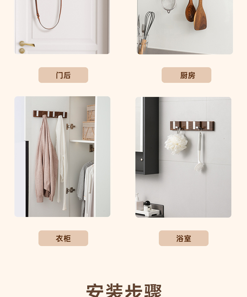 木纹吸盘挂钩免打孔强力承重真空粘钩厨房浴室卫生间墙壁毛巾无痕