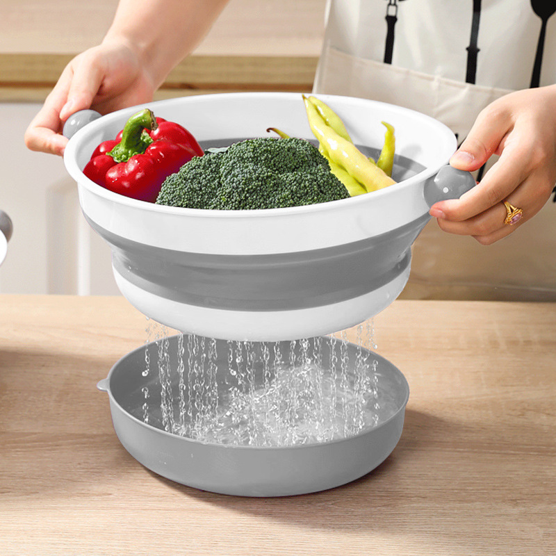 双层洗菜盆沥水篮折叠多功能厨房家用洗水果蔬菜篮子塑料加厚神器