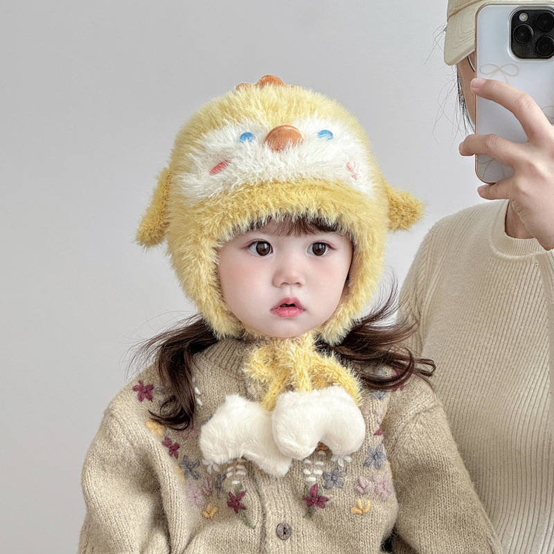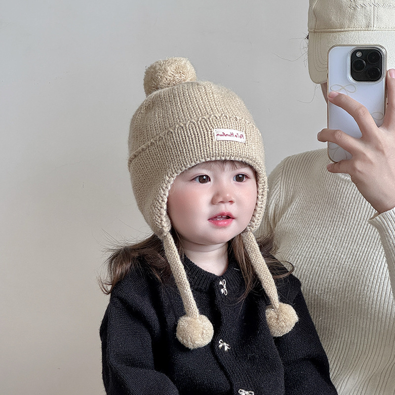 儿童帽子秋冬季保暖加厚可爱针织护耳帽男女宝宝出游防风毛绒帽潮