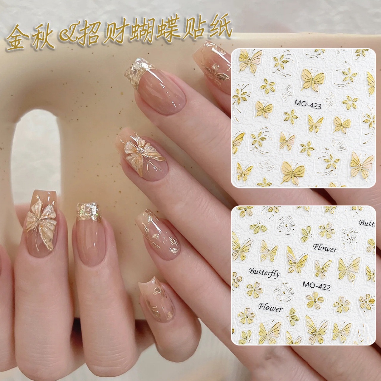 初秋の新型彩金蝶ネイルシール金秋純欲招財蝶花浮き彫りシール花卸売り