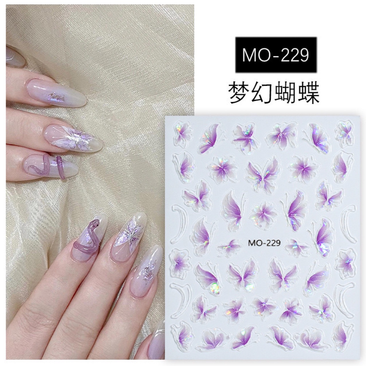 ネイルシール2024春夏新作氷透貝殻光蝶レリーフ結晶ドリル夢仙気着用甲シール