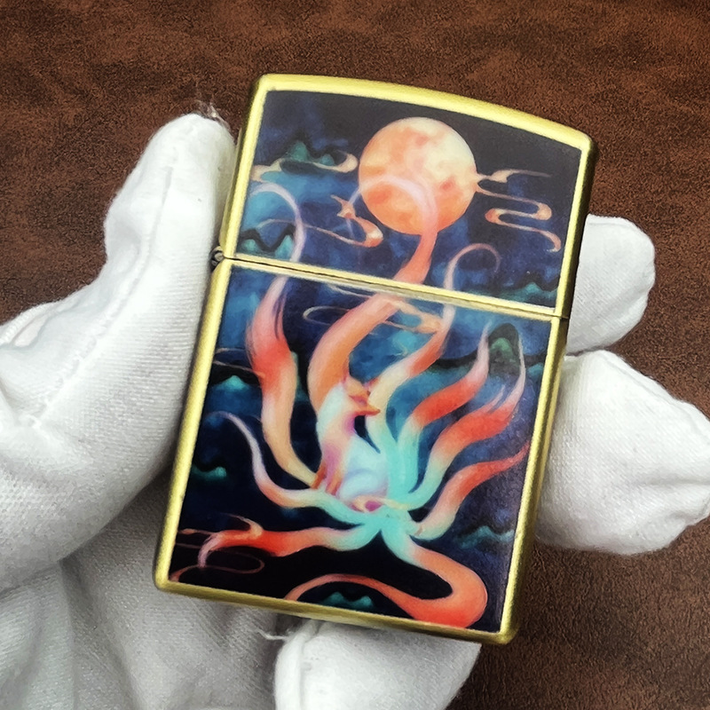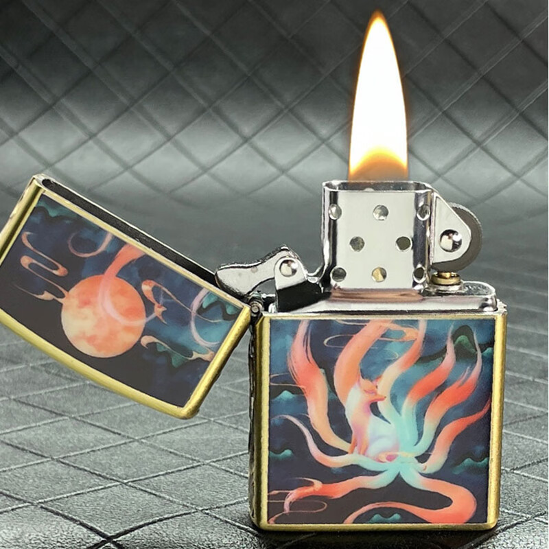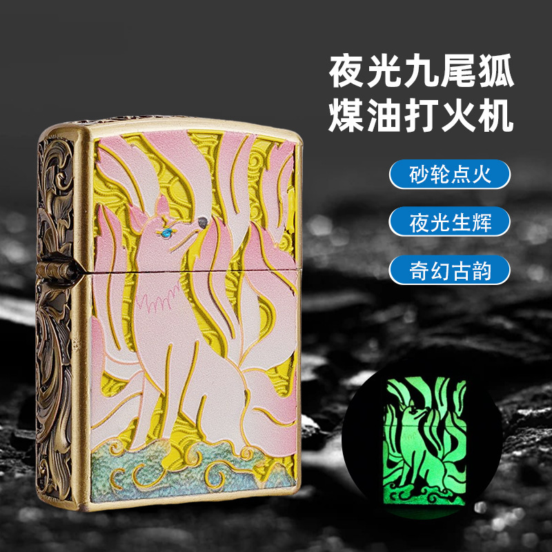 JL2011夜光九尾狐金属煤油打火机抖音快手货源三件套礼盒装打火机