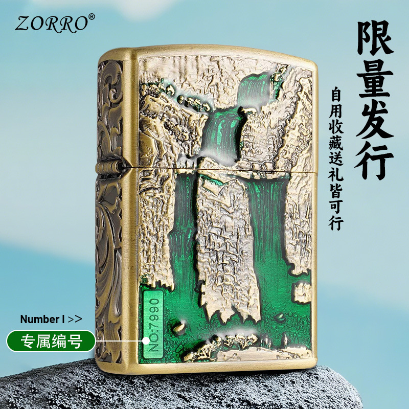 ZORROゾロZK37高山流水精雕レトロ防风灯油ライター个性创造性浮雕彩色絵