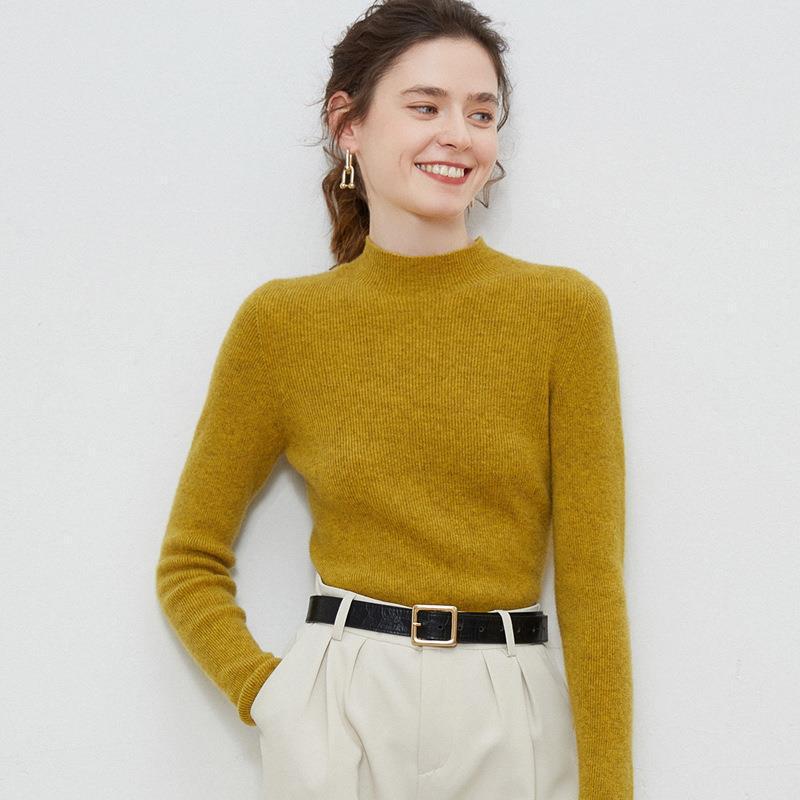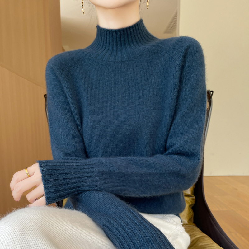 シームレス一線成衣半高襟ウールセーター女性秋冬女装ウールニットシャツ長袖修身セーター