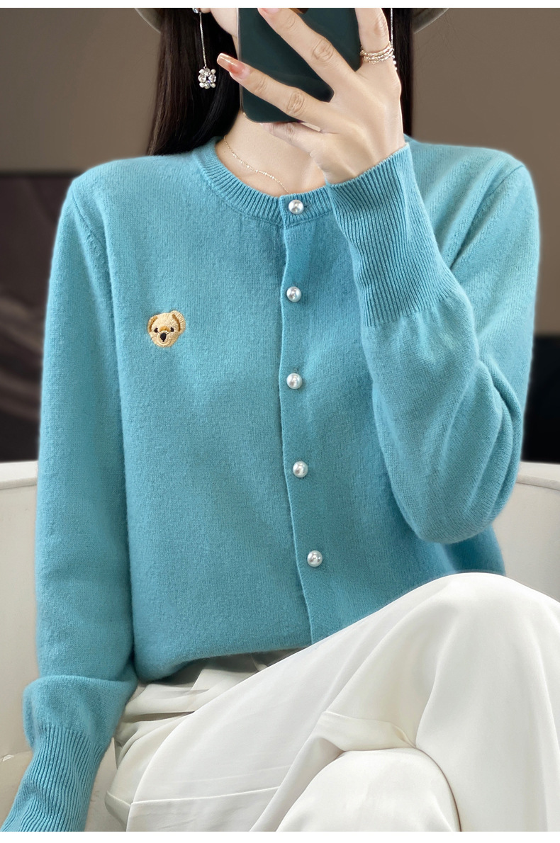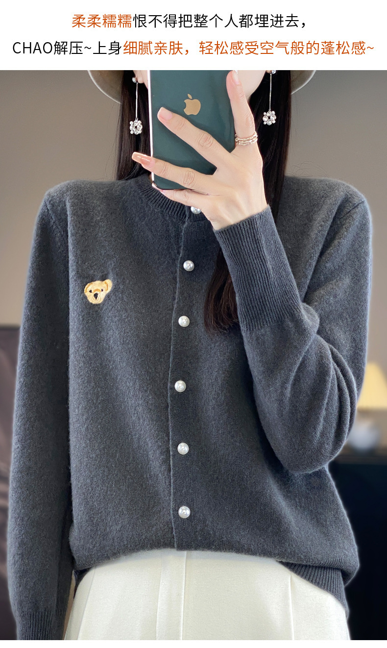 ニットカーディガン女性の 2024 秋の新スタイル薄いラウンドネックセータージャケット春と秋のショートアウタートップ