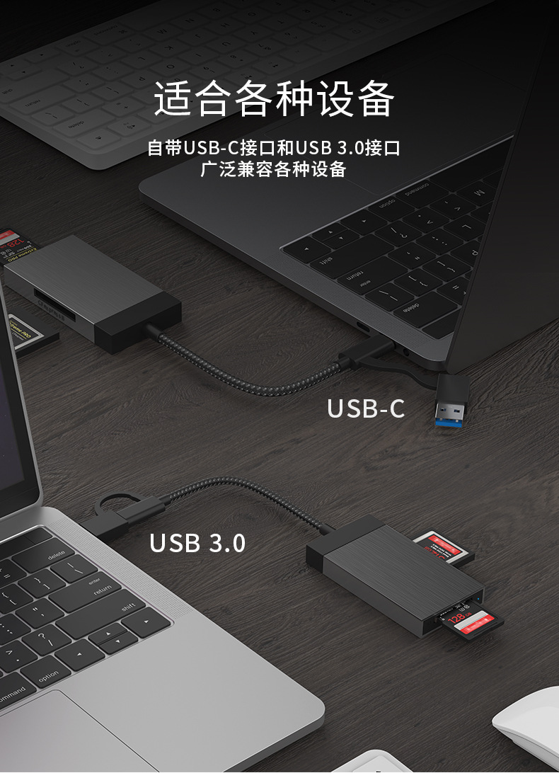 USB/Type-C 高速カードリーダー SD/TF4.0 デュアルカードコンピュータ一眼レフカメラは UHS-I/II カードをサポート