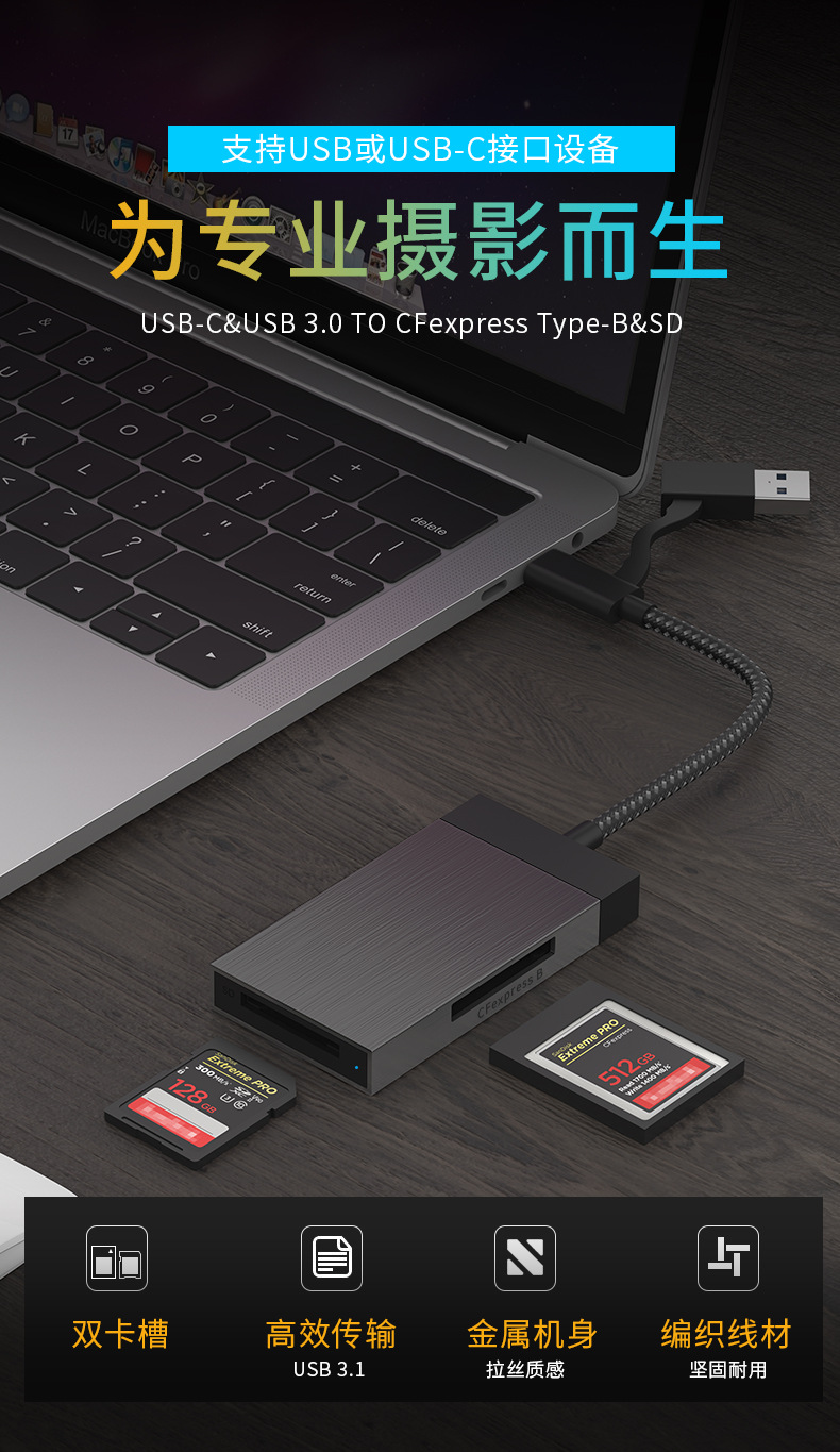 读卡器CFexpressType-A高速CFBUSB3.2高速10Gbps CFE/SD2.0