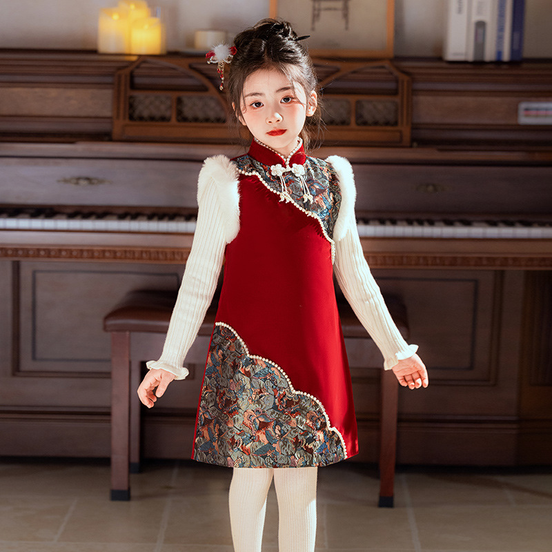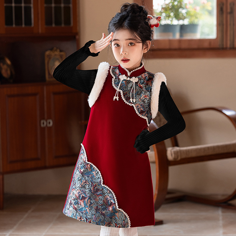 バーガンディ - キルティング (シングル スカート),バーガンディ キルティング + セーター,バーガンディ キルティング + 黒のセーター