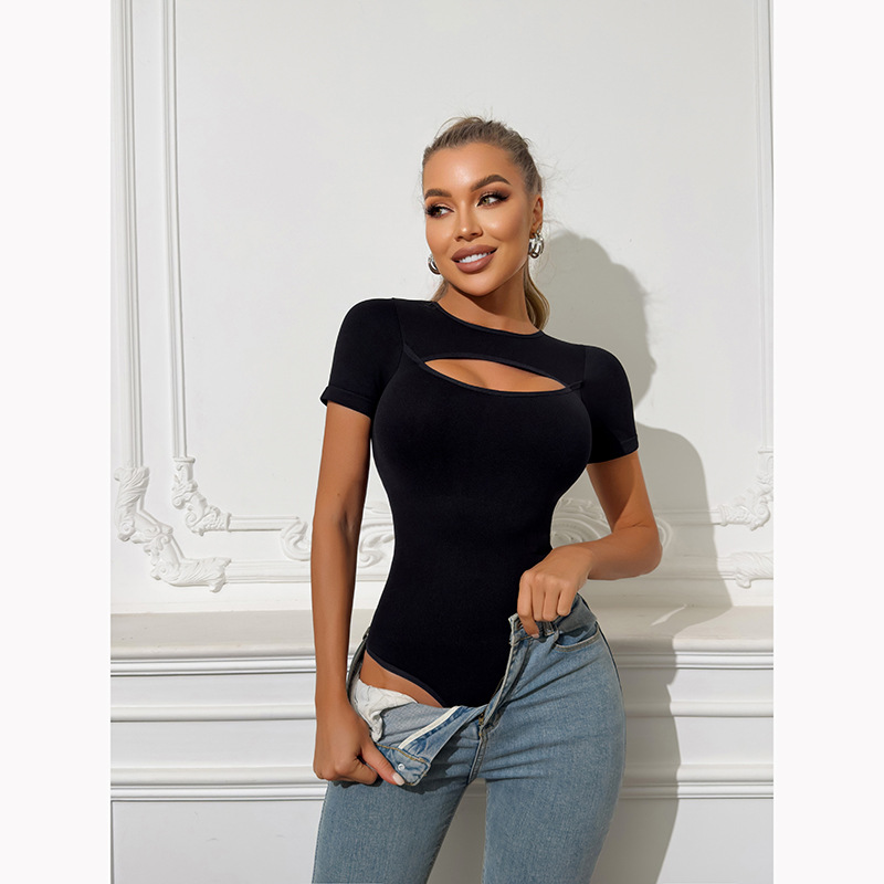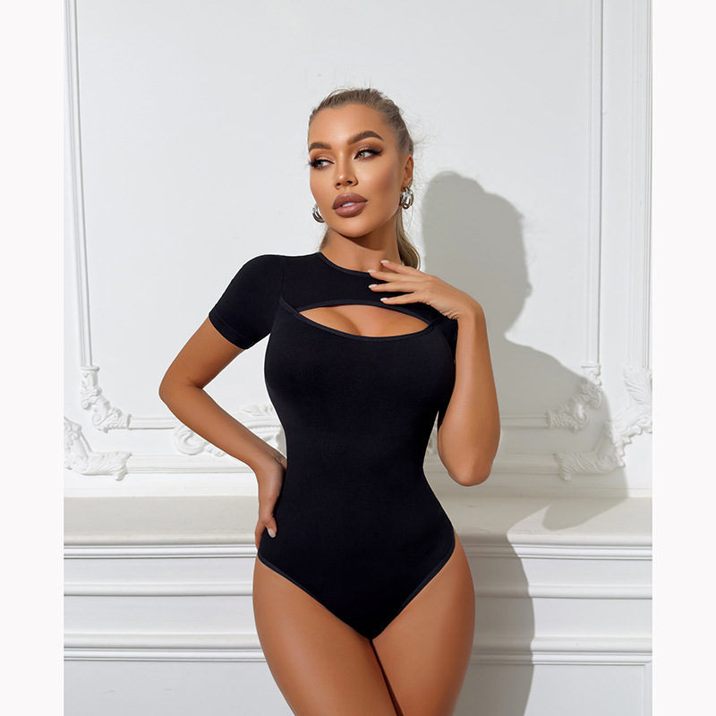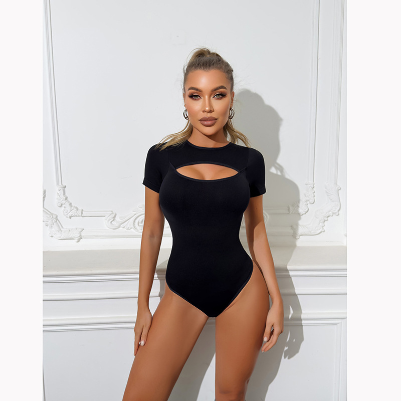 クロスボーダーワンピース半袖レディース Tシャツラウンドネック高弾性タイトウエストシェイプウェアサマースポーツスリムジャンプスーツアウターウェア