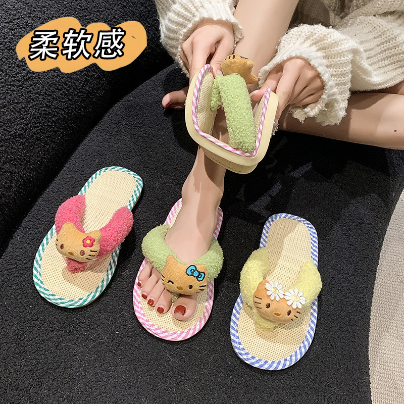 夏のかわいい日本式スリッパの女性の室内の亜麻の柔らかい底の静音は日本の夏の外で人の字を着ます。