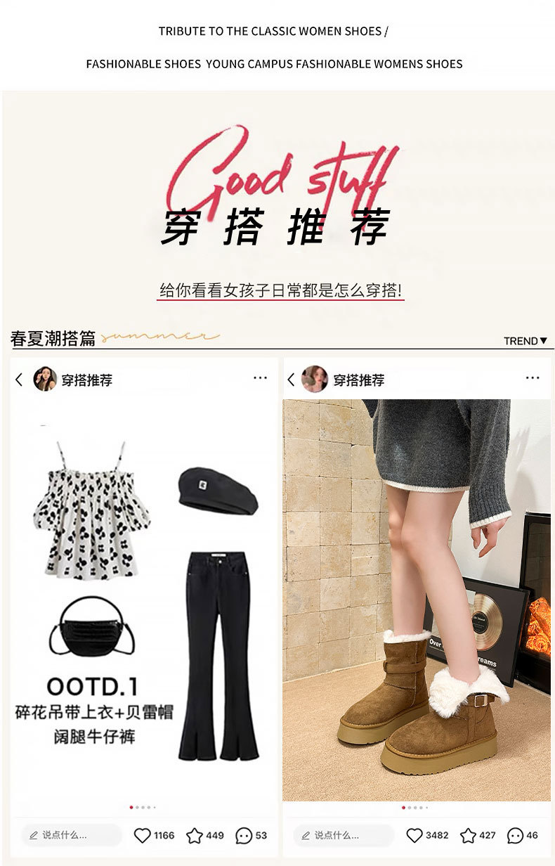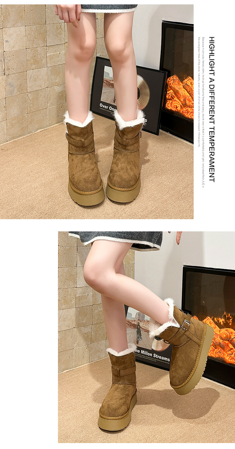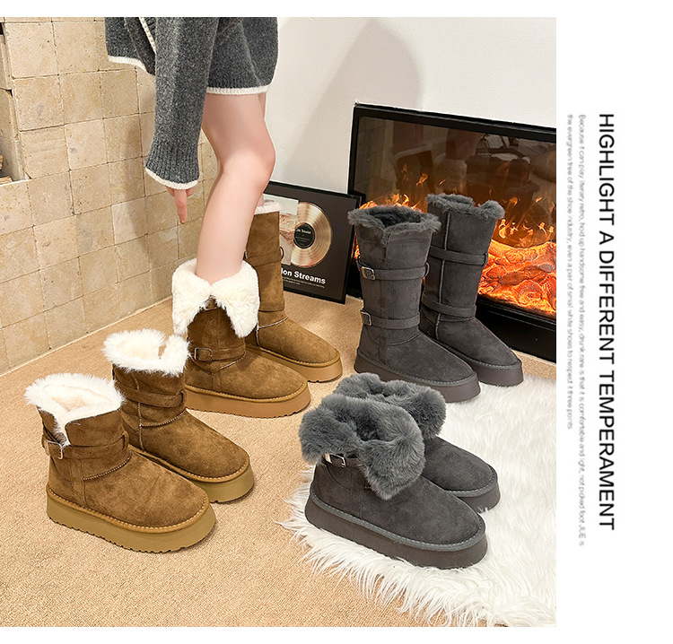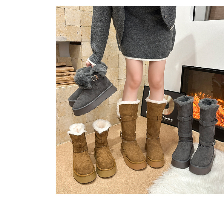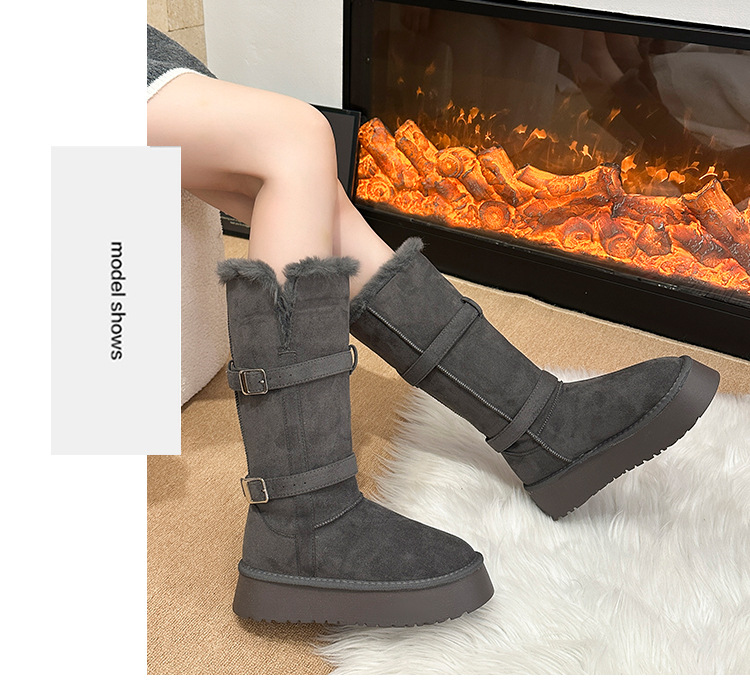 長筒雪地靴の女性モデルは2024冬の新型東北毛羽とベルベットが厚くて暖かい外に厚い底の綿靴を着ている