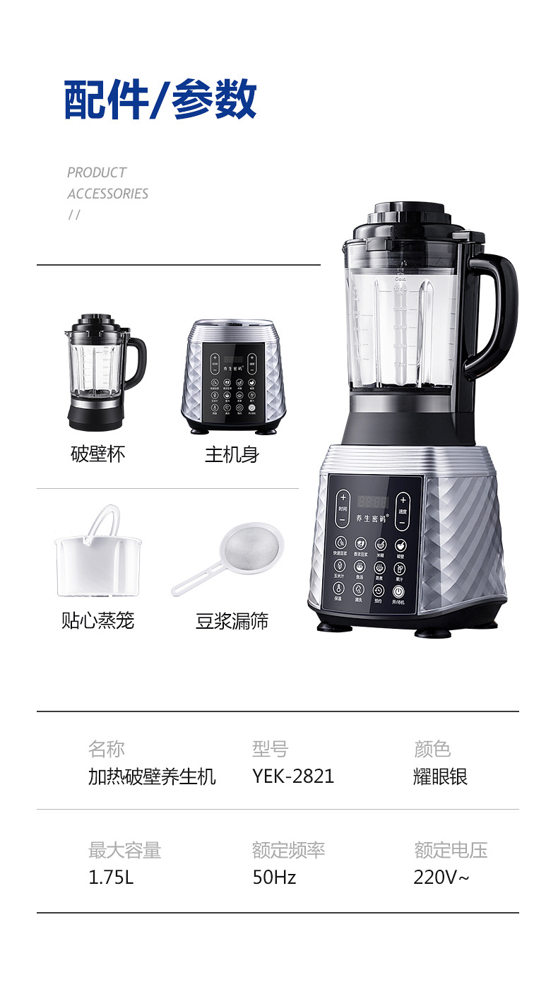 イエルカン破壁機 家庭用多機能調理機 大容量加熱式離乳食自動粉砕豆乳機
