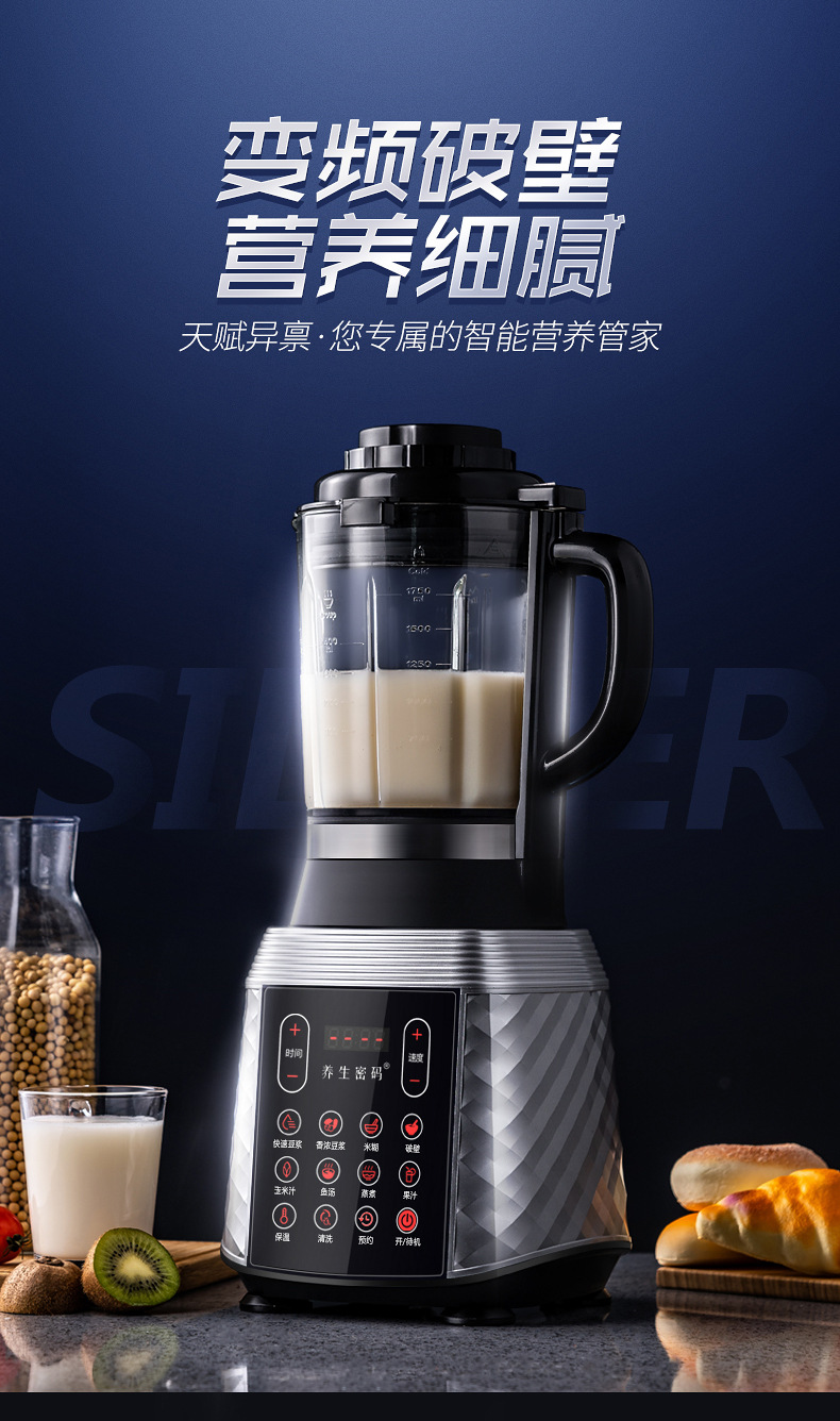 新型予約知能薄型破壁機家庭用全自動搾汁ミキサー料理機豆乳製造機