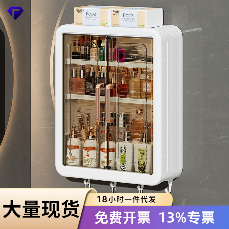 浴室収納キャビネット穴なし壁掛け磁気吸引キャビネット付き防塵収納棚家庭用トイレ壁掛け棚