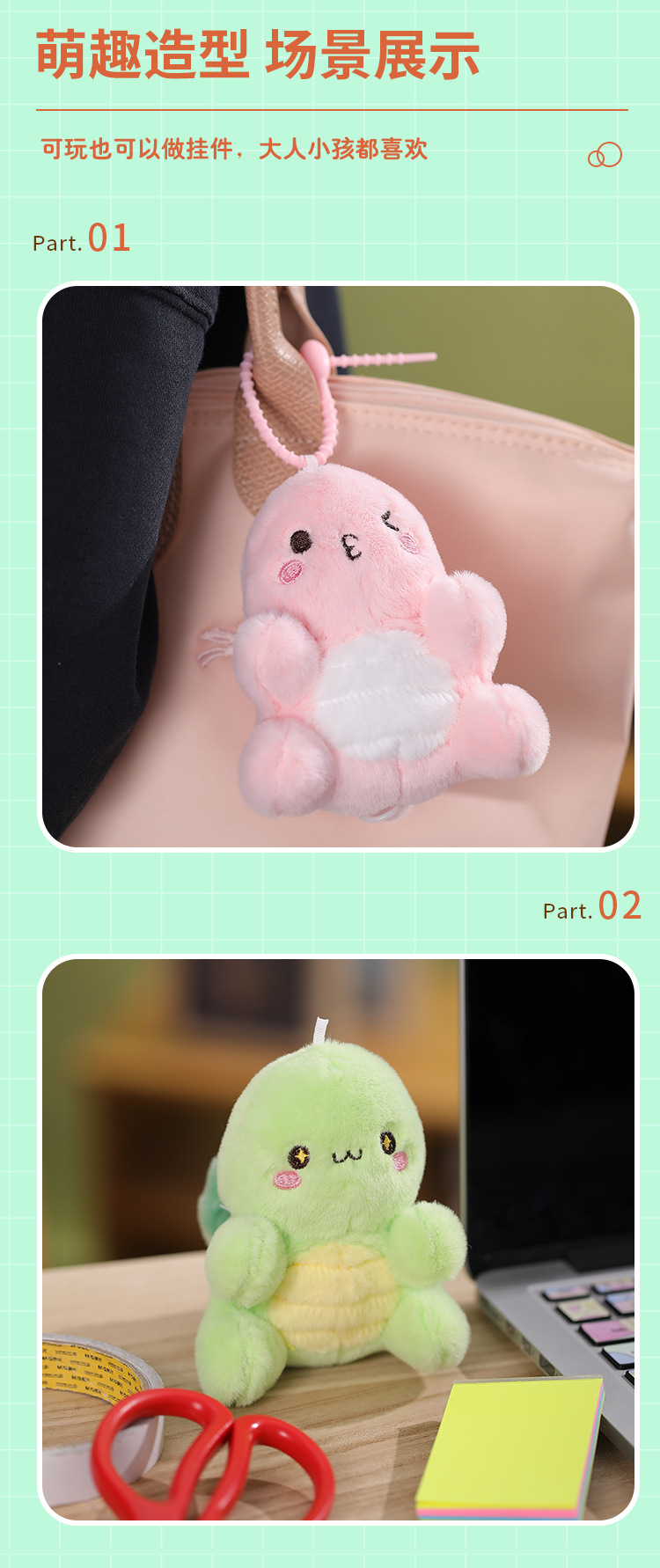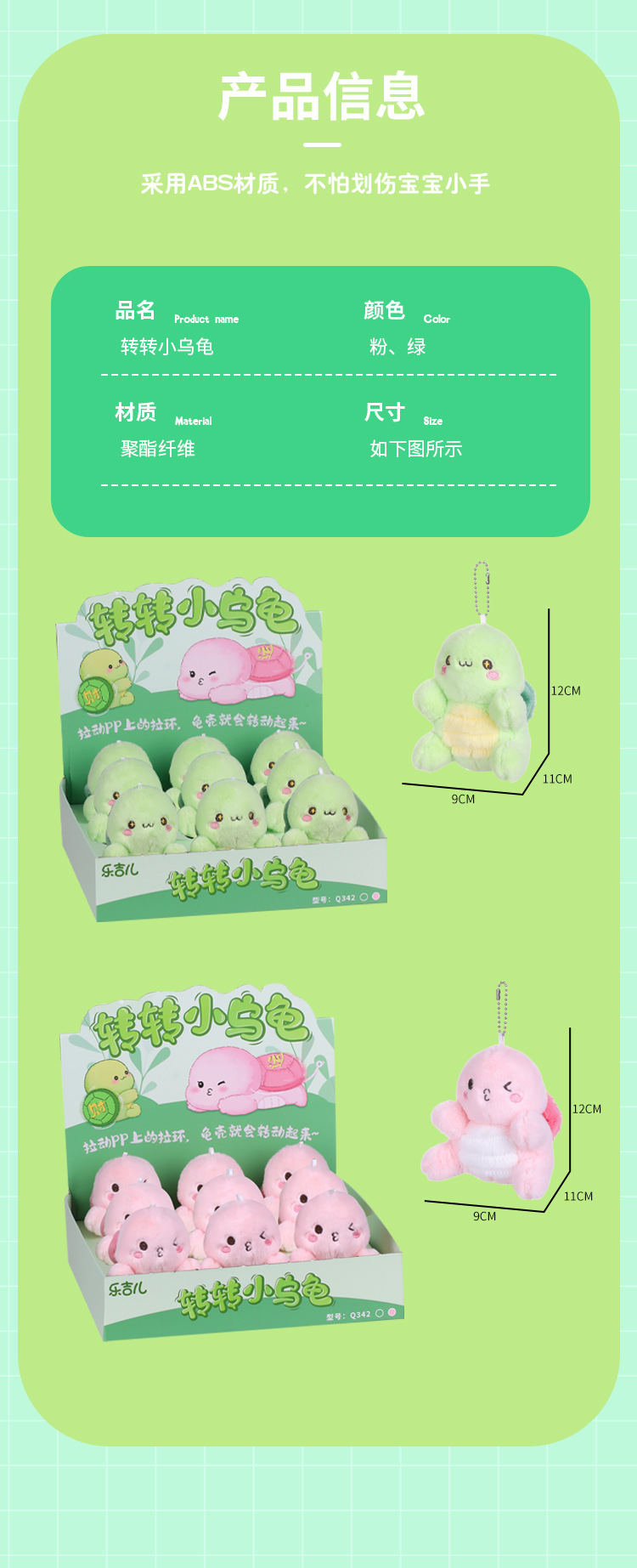 楽吉児は小さい亀を回って縄を引いて亀の公仔を輸送します。