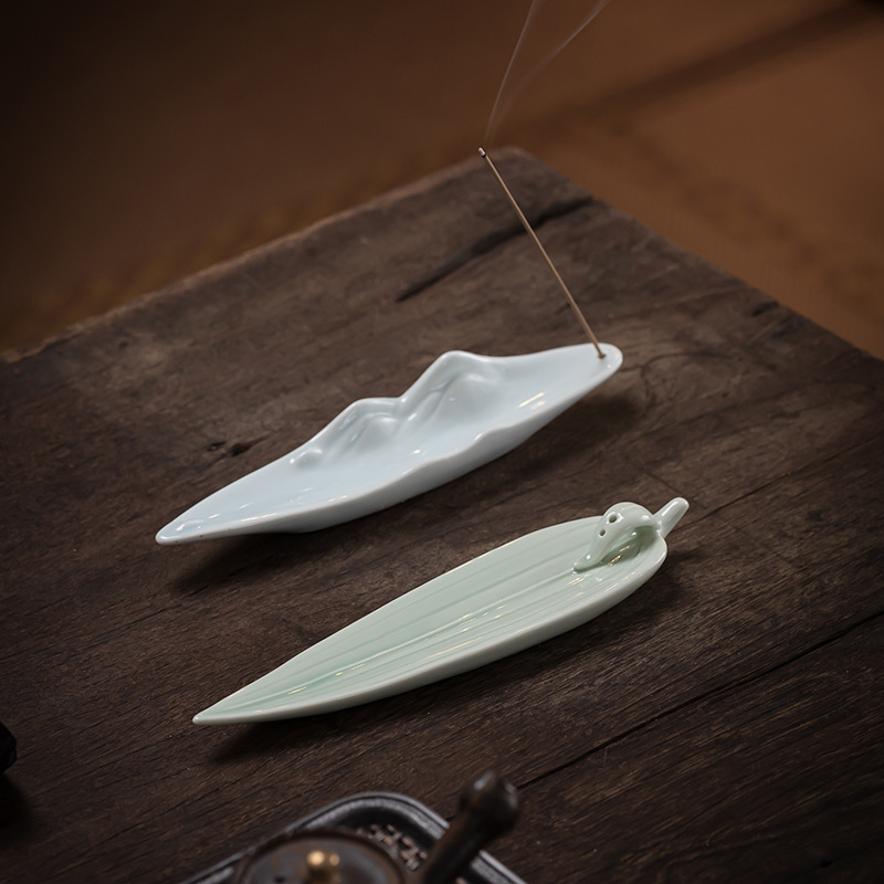 白色陶瓷线香插(竹叶)