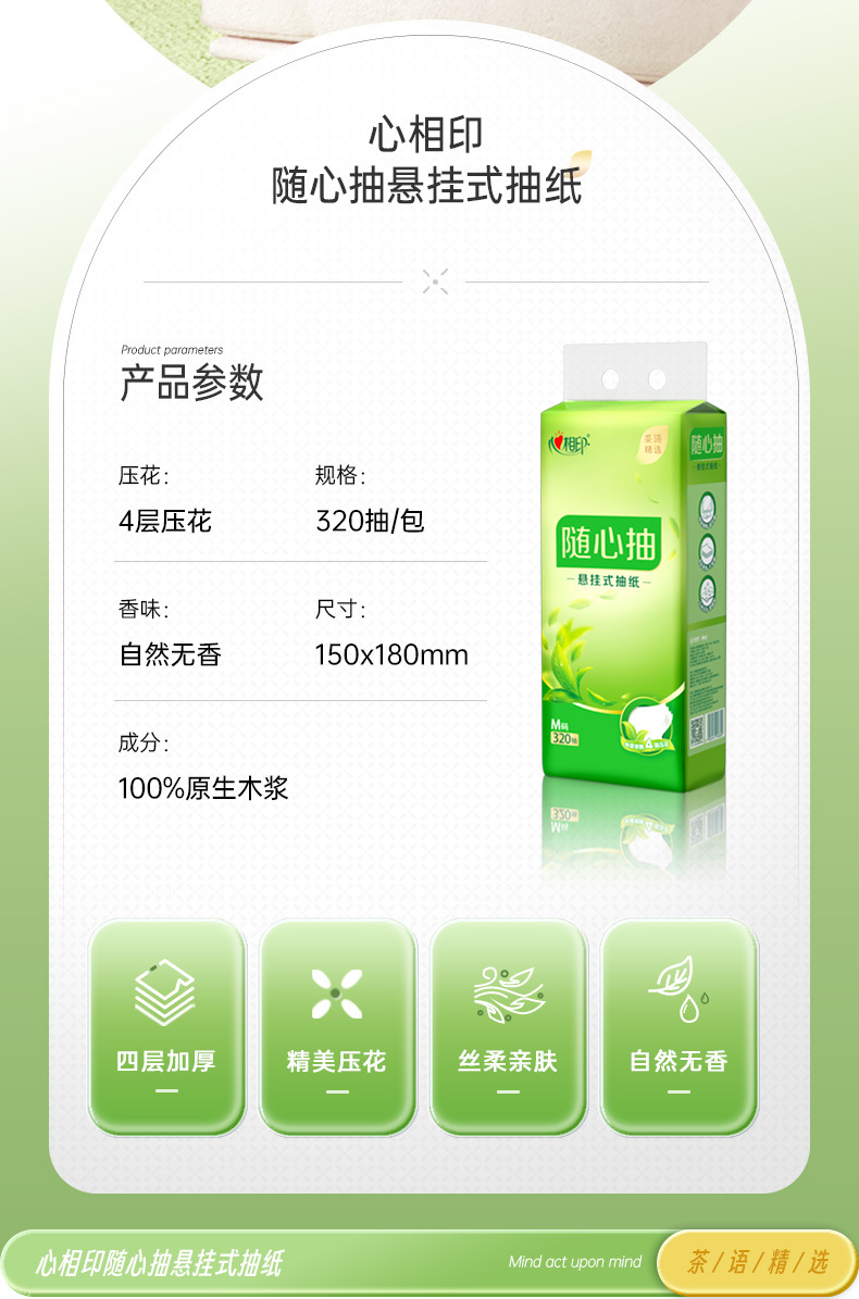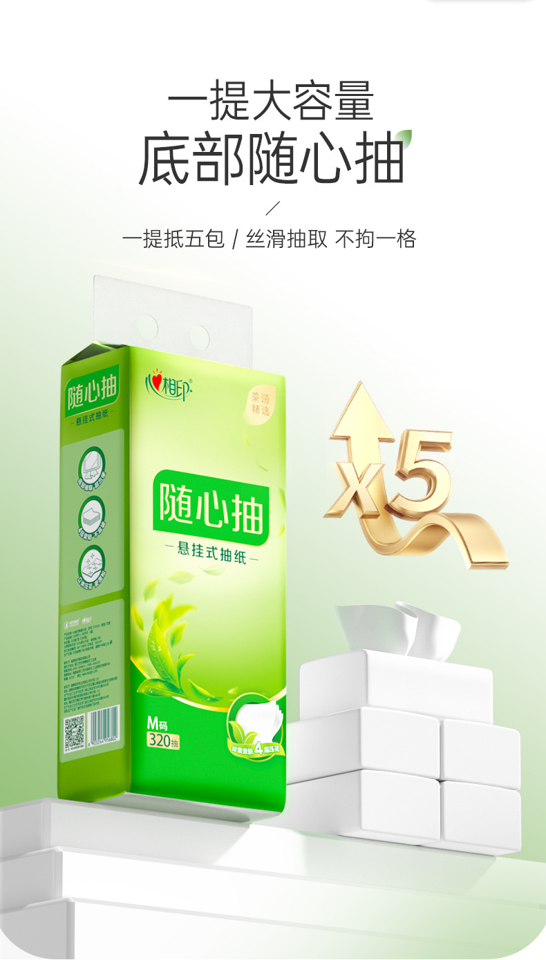 心相印吊り下げ式ティッシュ4層320引き出し1引き出しナプキン家庭用の実恵包装ティッシュ