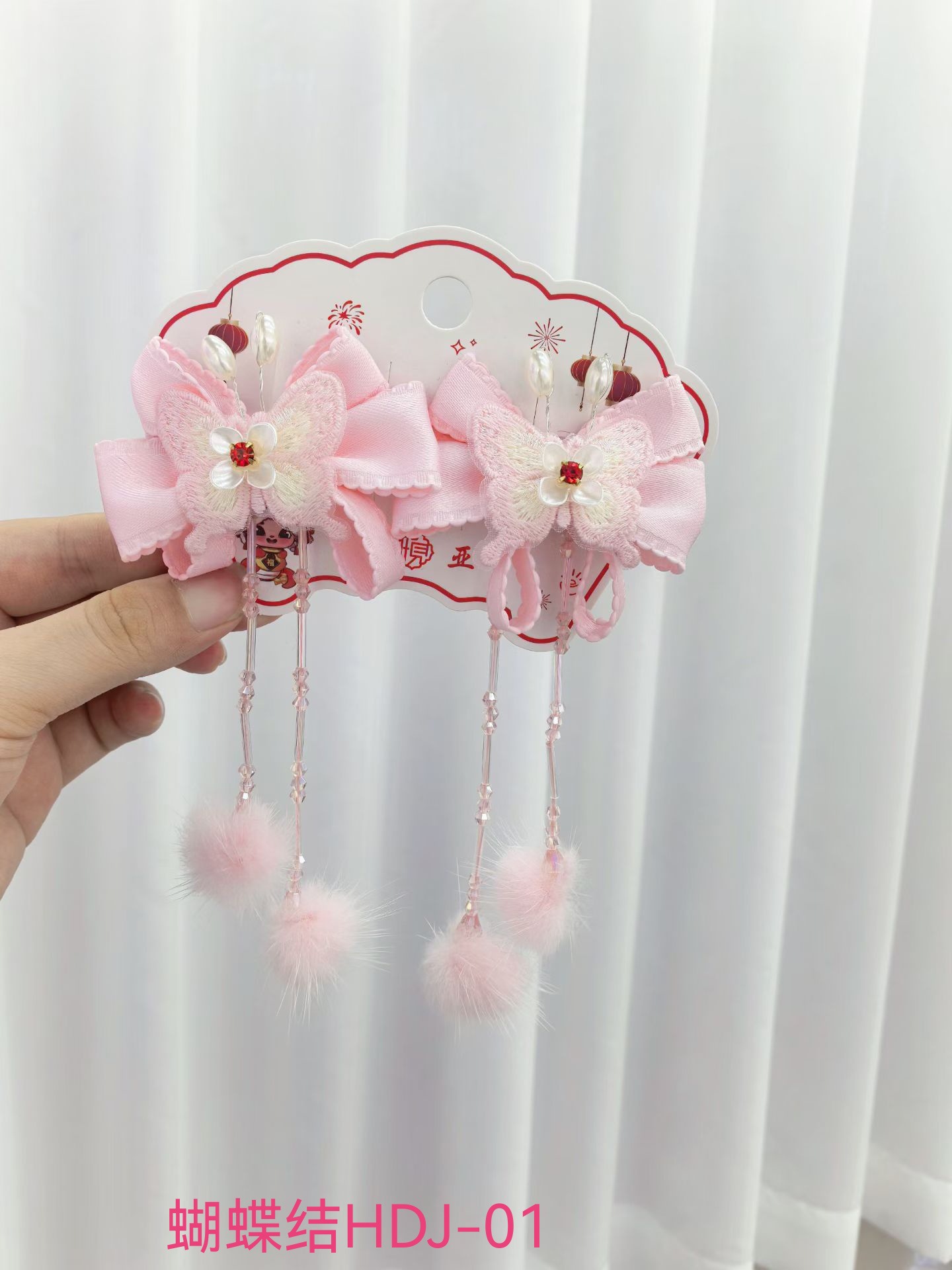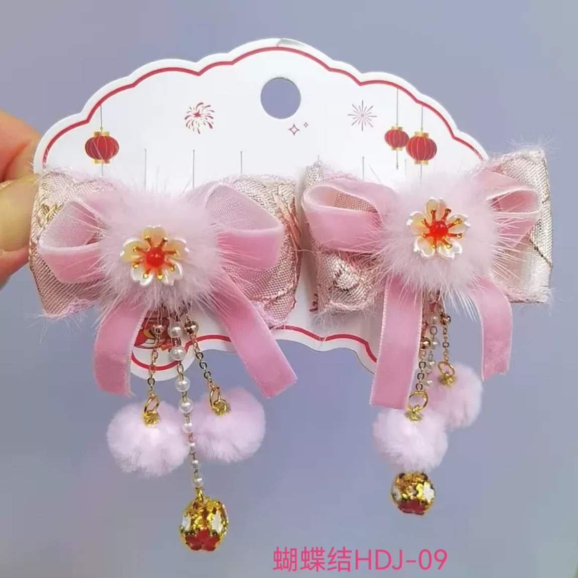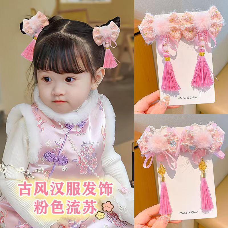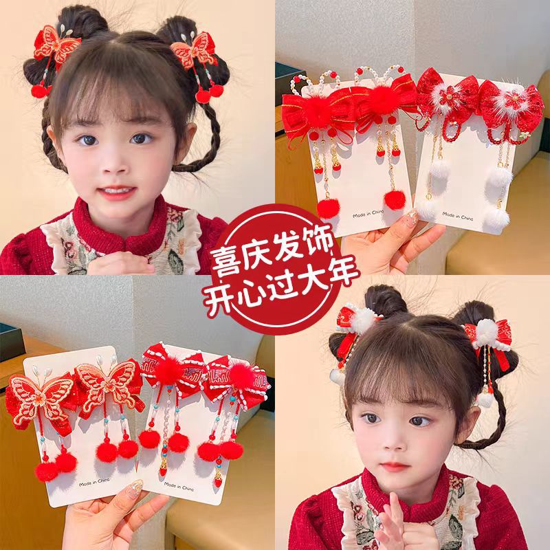 宝宝蝴蝶结喜庆头饰中国风可爱流苏新年发夹女童唐装汉服发饰批发