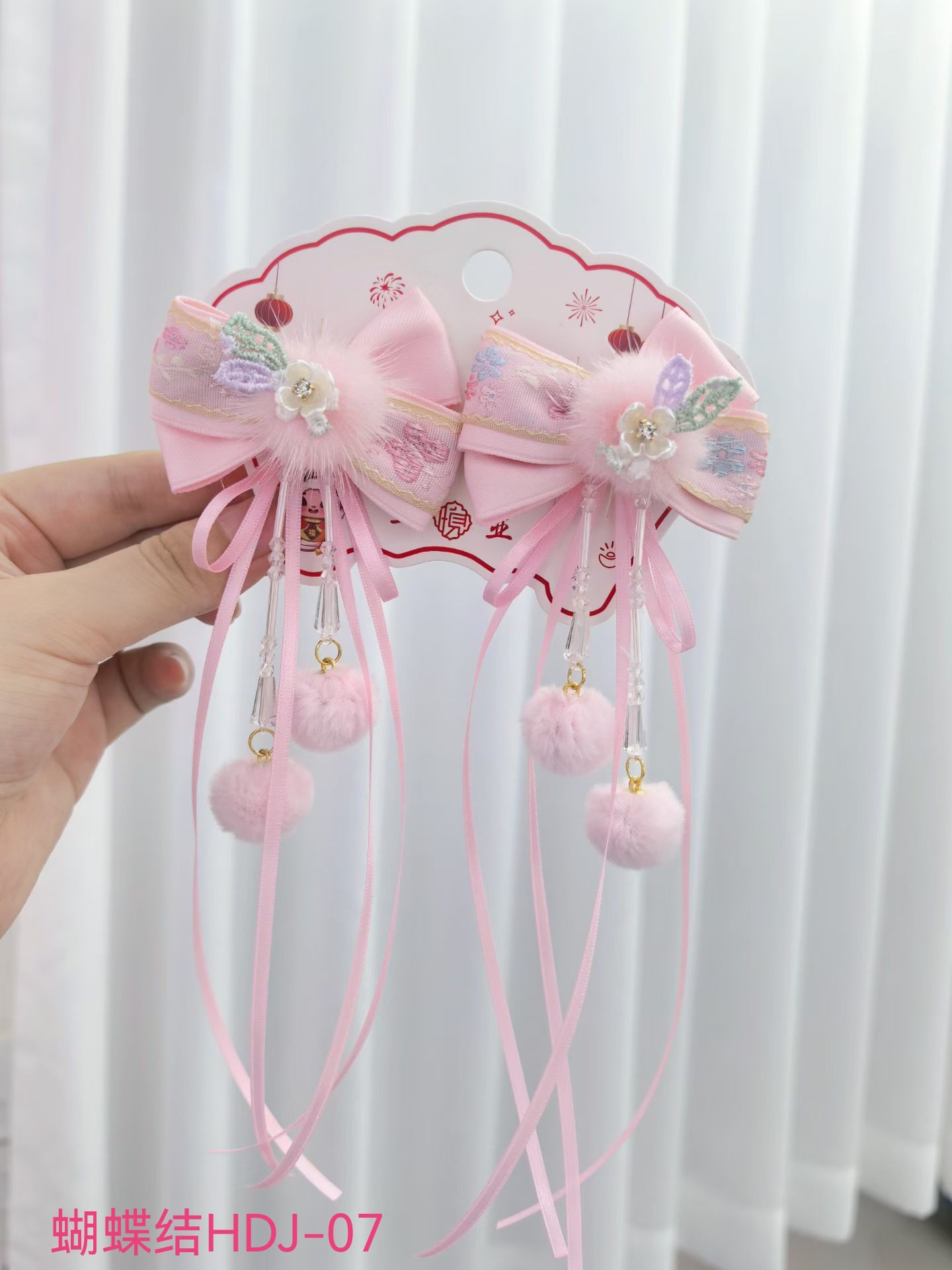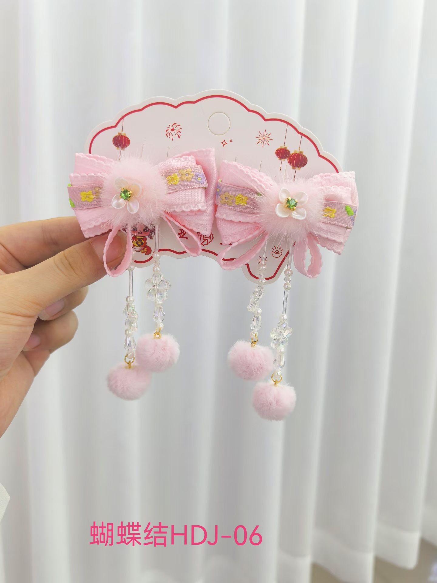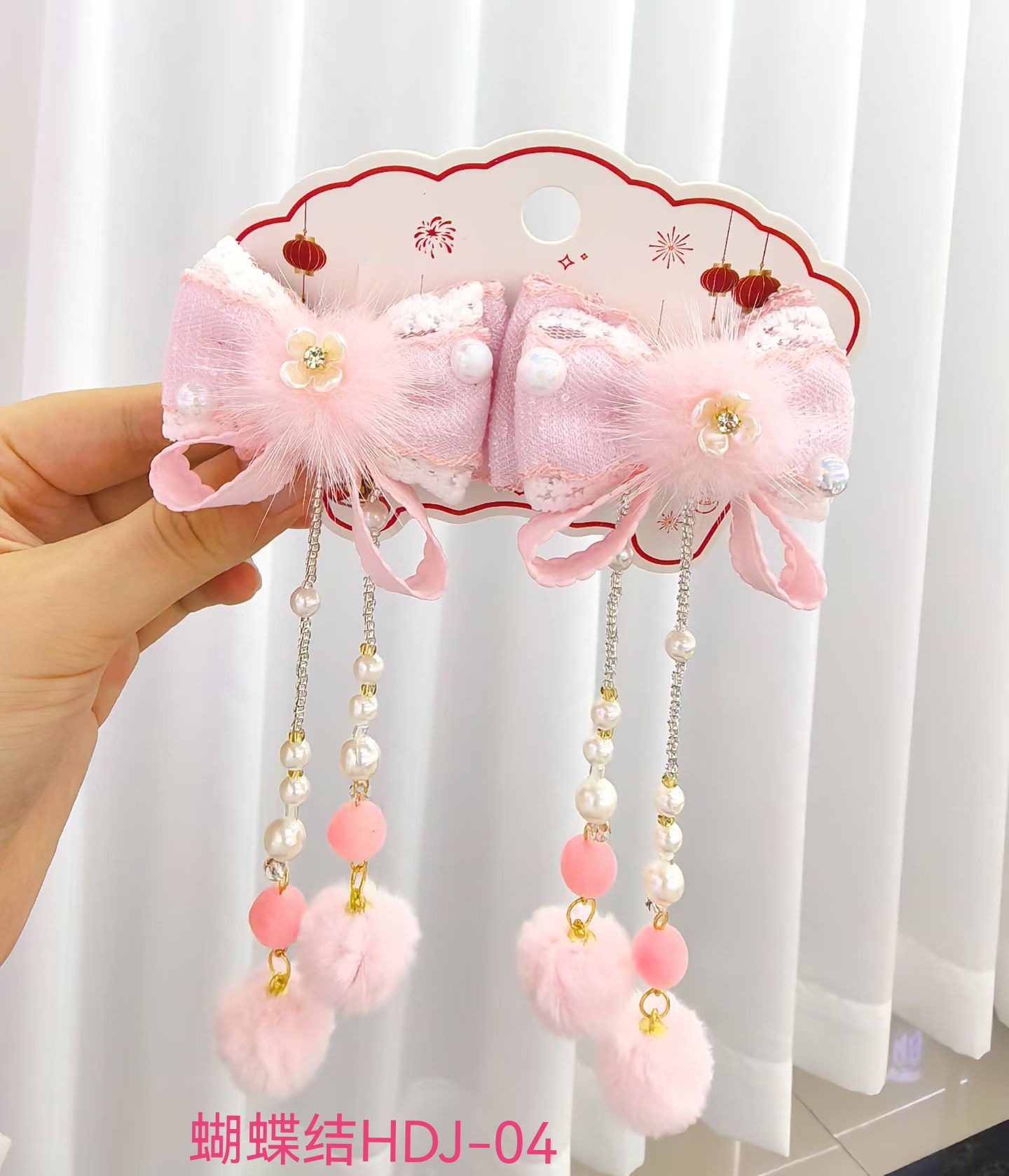 宝宝蝴蝶结喜庆头饰中国风可爱流苏新年发夹女童唐装汉服发饰批发