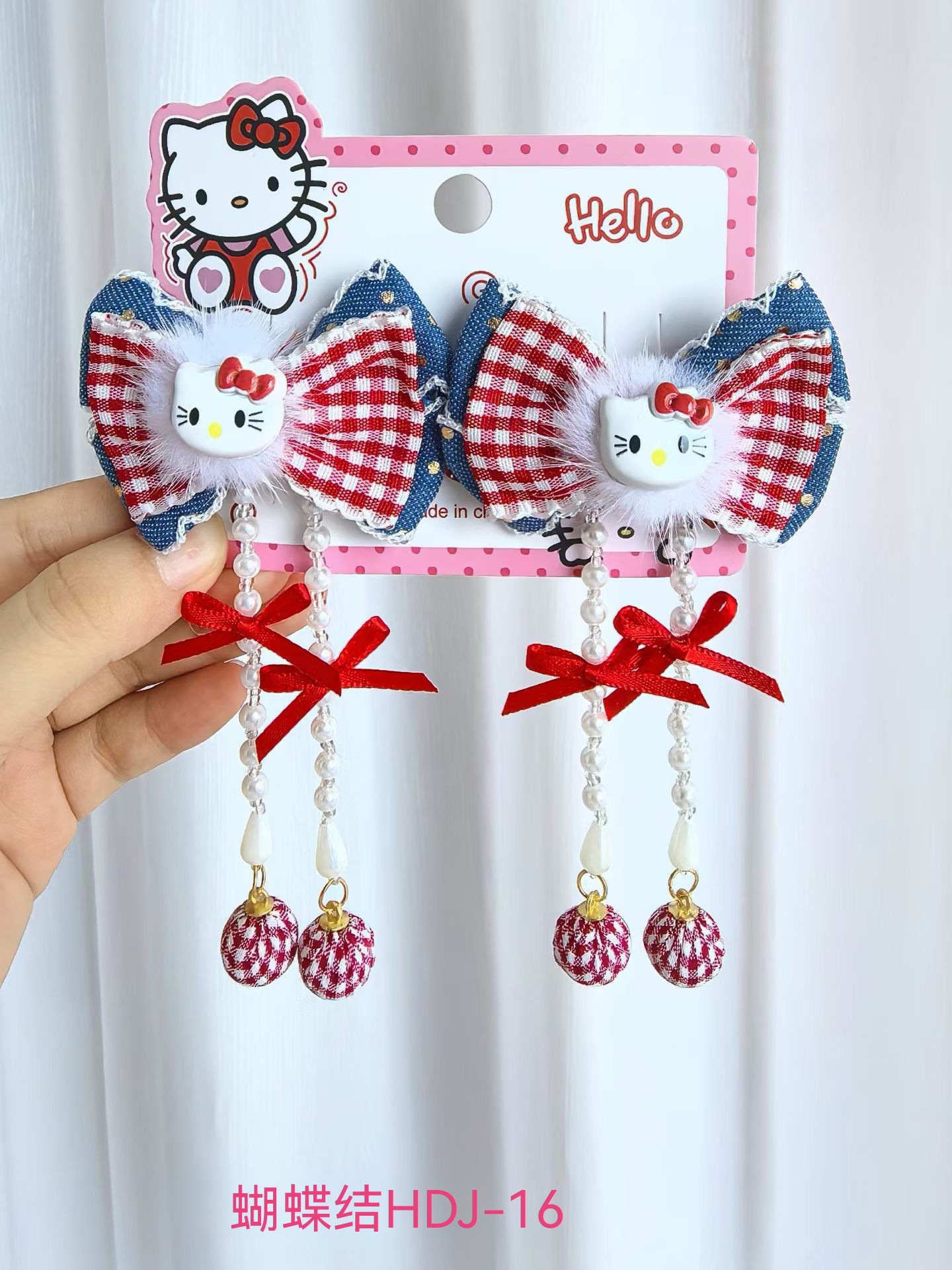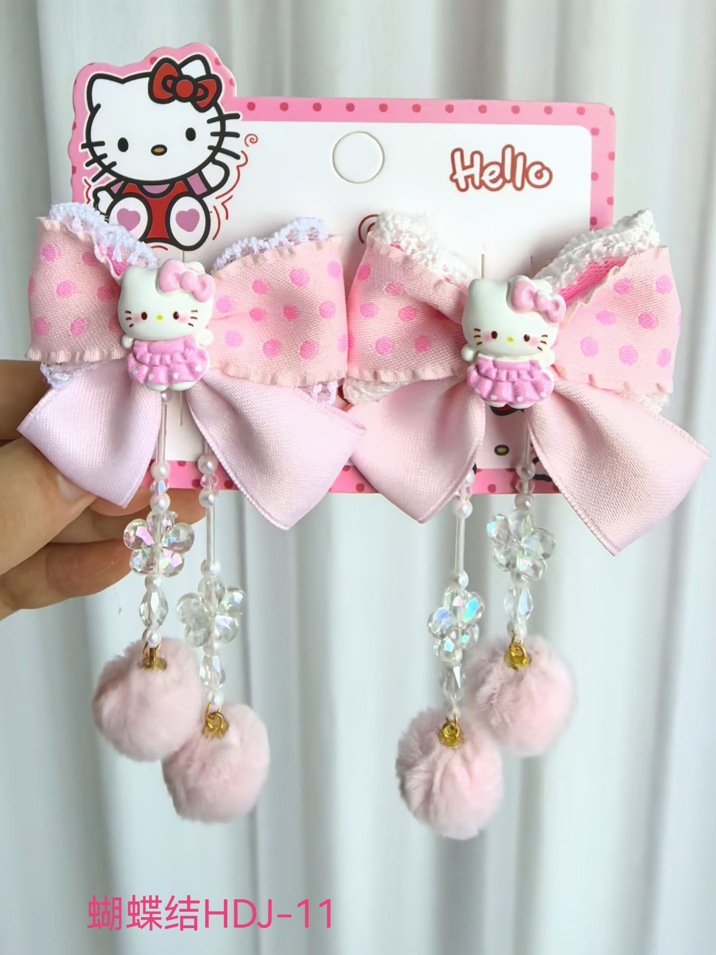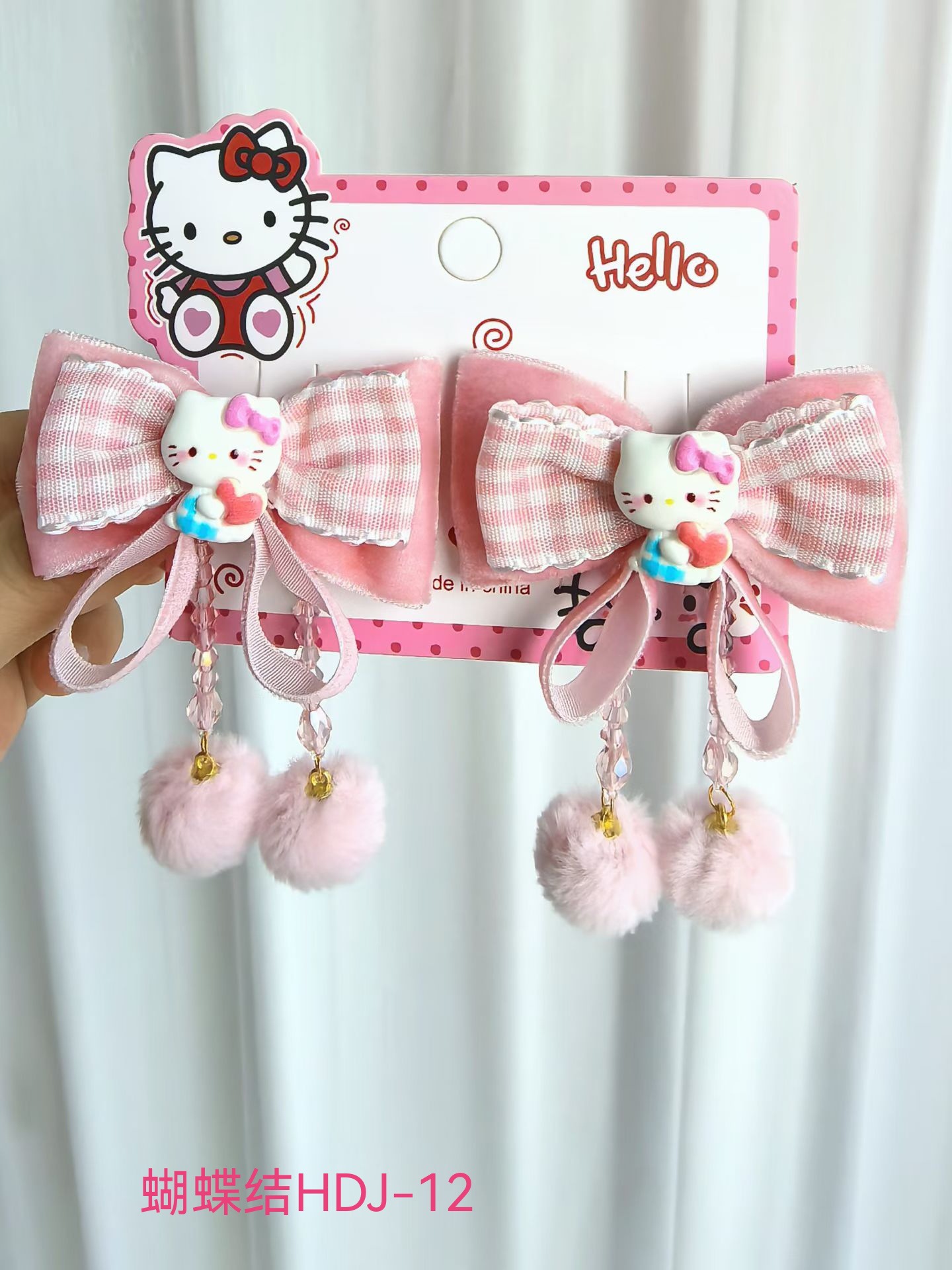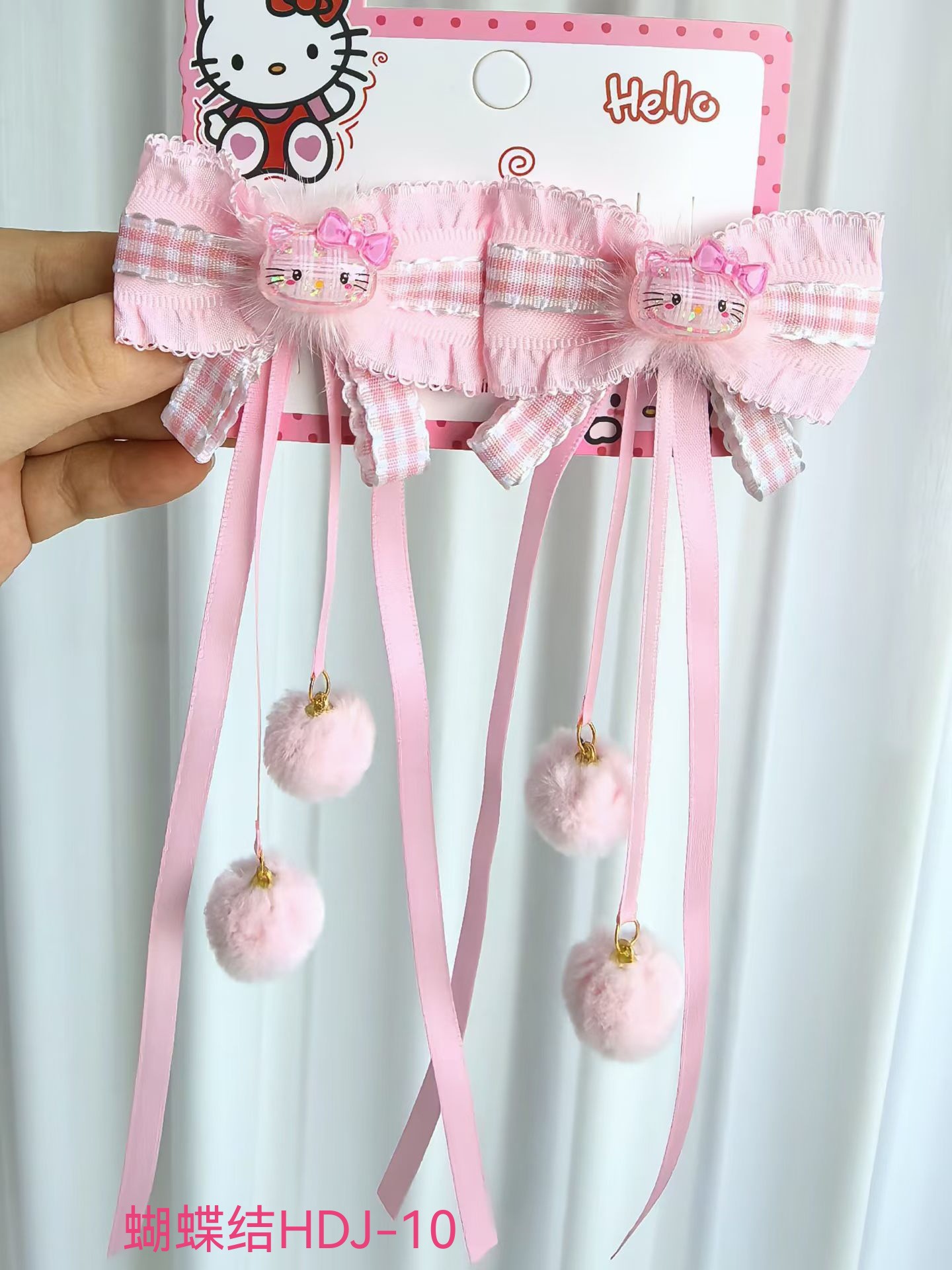 儿童新年红色HelloKitty发夹女童可爱蝴蝶结飘带对夹汉服古风头饰