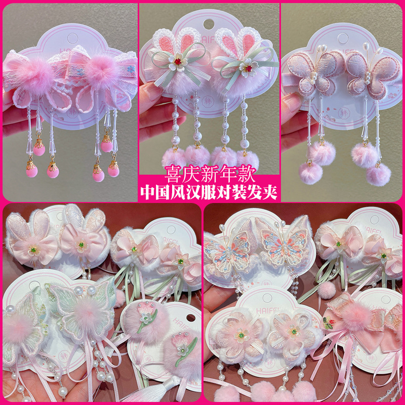 漢服ヘアアクセサリー 女の子用 ブヨウフリンジヘアピン 子供用古風蝶結びヘアクリップ 新年売れ筋商品