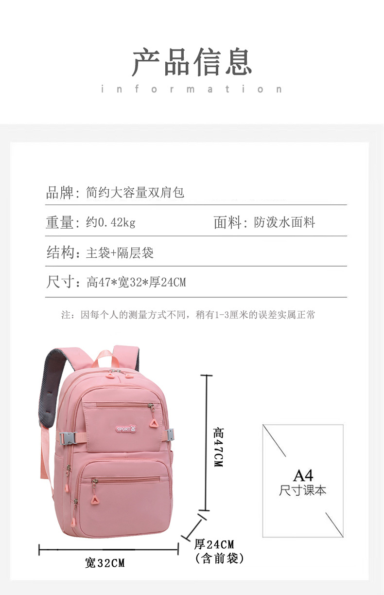 新型カバン女子小学生中学生大容量リュックサック多機能短距離旅行旅行リュックサック