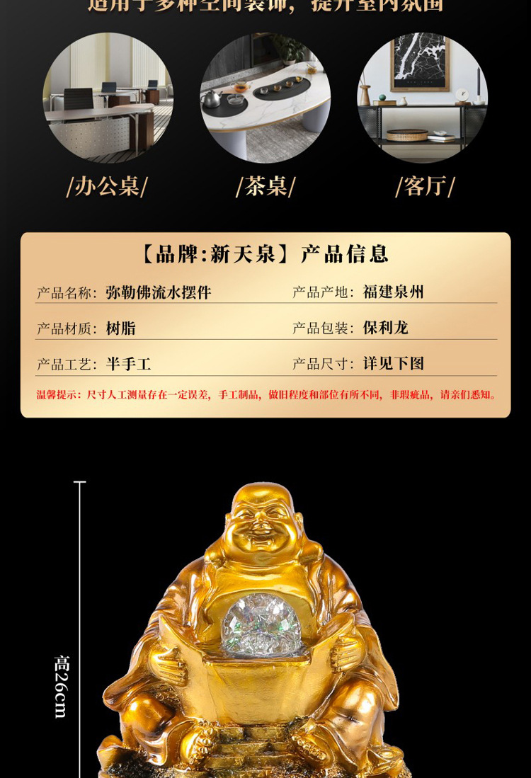 新天泉招財自動流水置物循環水中国式茶卓事務室デスクトップ小置物客間家庭用
