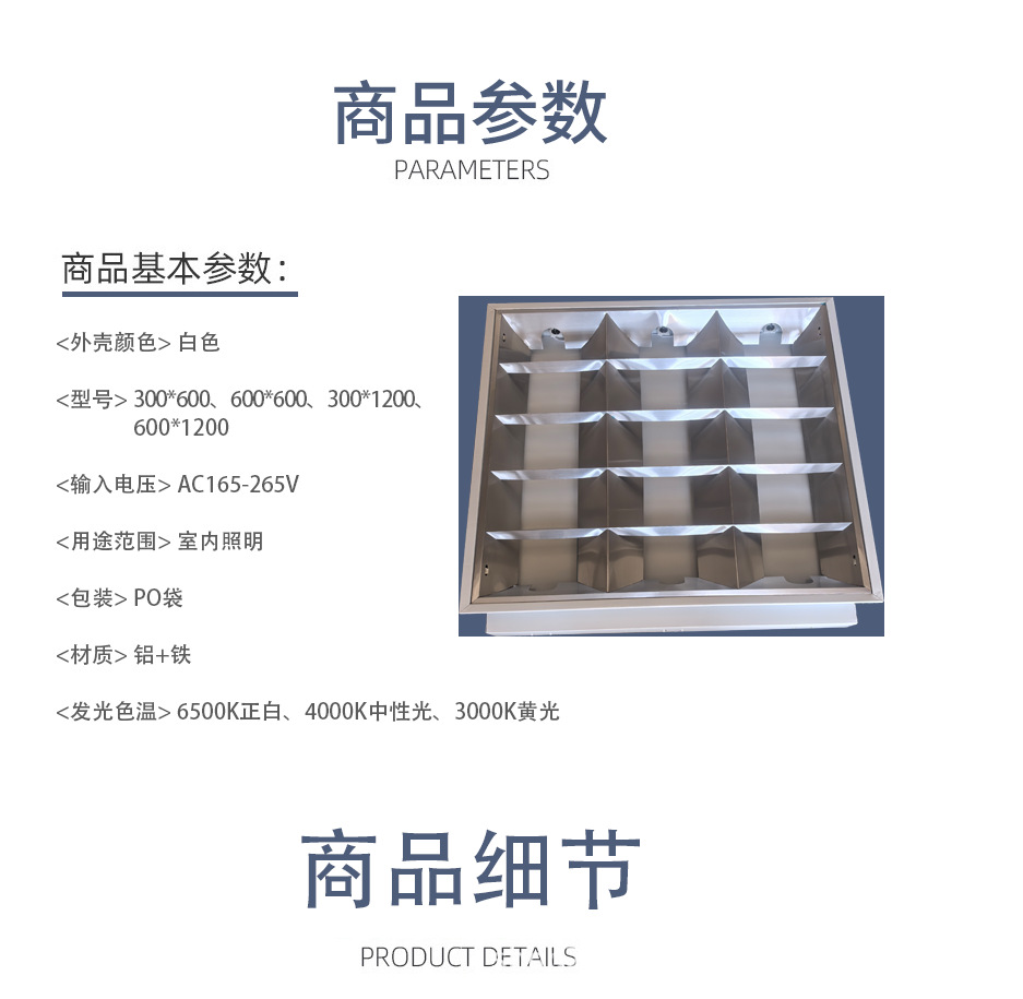 メーカー卸売りt5 t8増厚金暗装明装1200*600*300*300*600*1200グリルライト盤