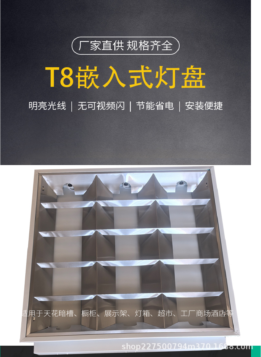 Ledグリルライトディスクダントライトt8単単三管600*600組み込み式暗装ledグリルライト