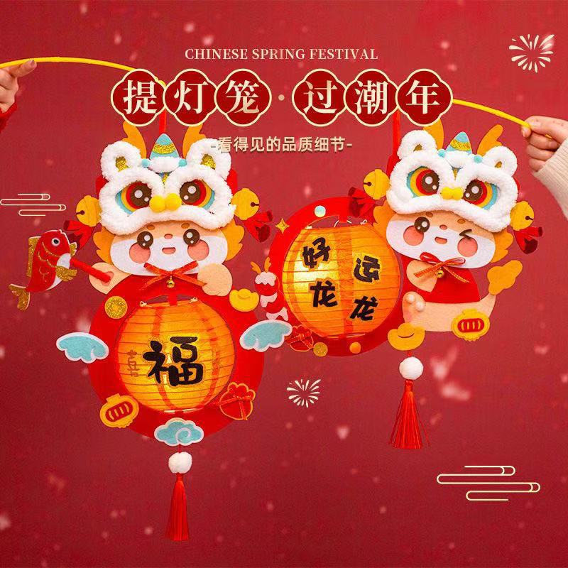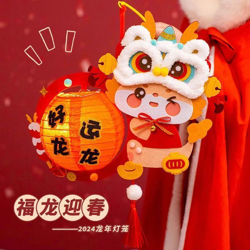 2024龍年国潮手作りdiy児童新年提灯製作材料幼稚園中秋節発光花灯