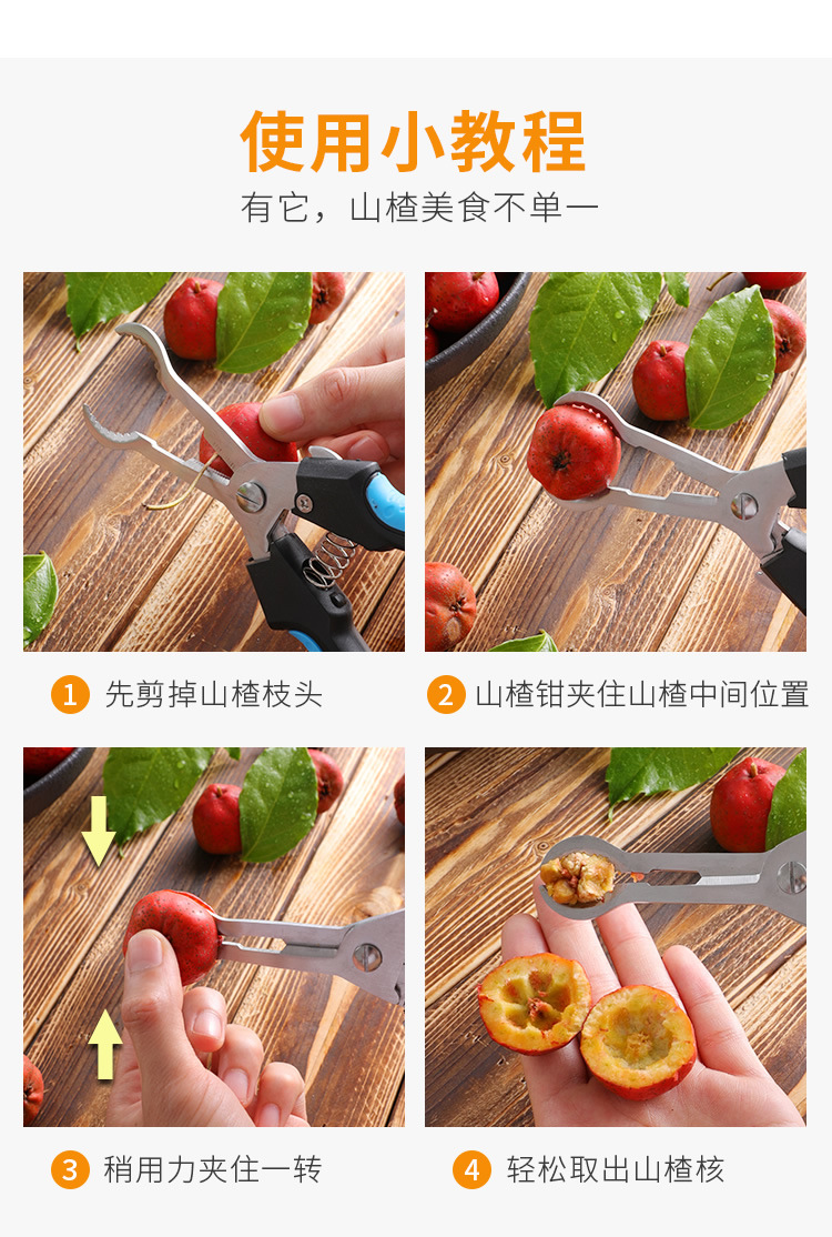 フルーツコアリングサンザシ種子除去新サンザシ種子除去ペンチスプリングサンザシペンチ氷砂糖漬け剪断家庭用ツール