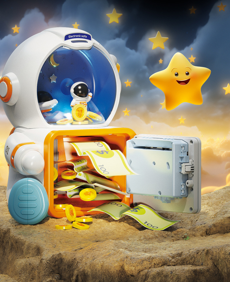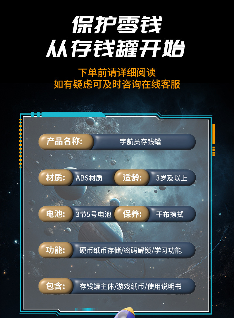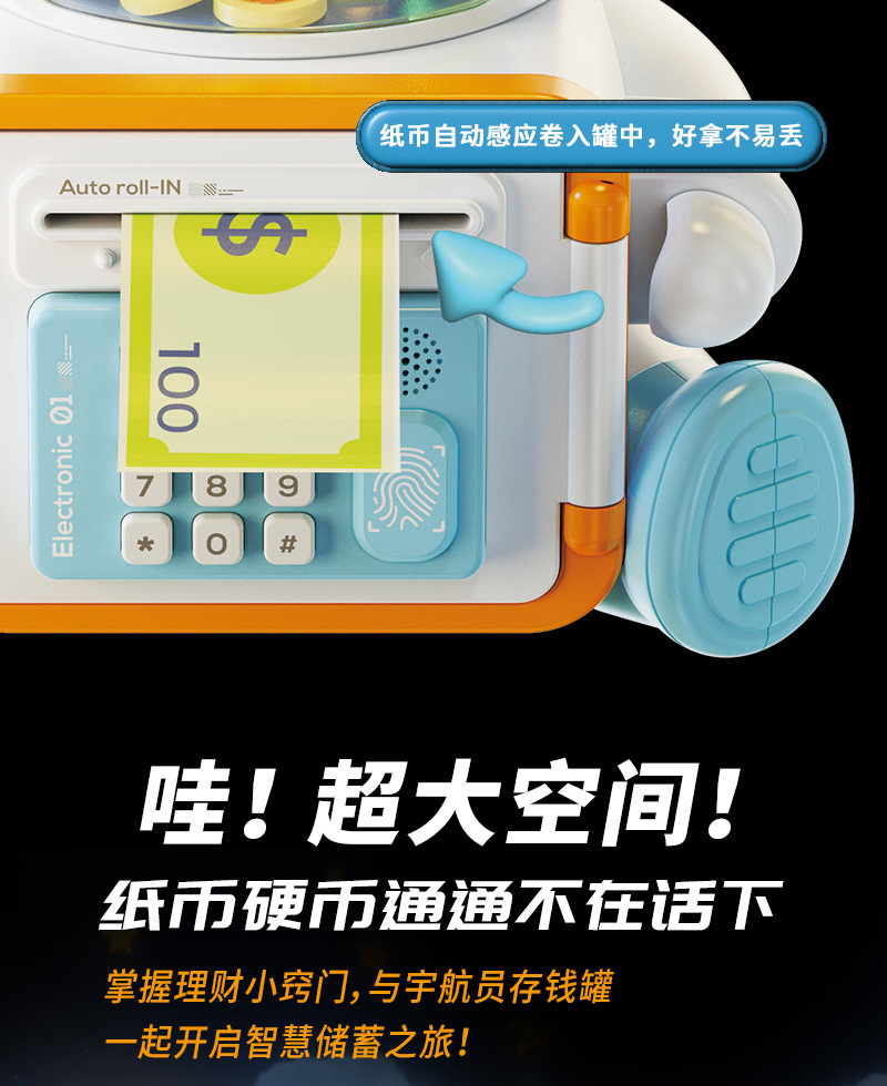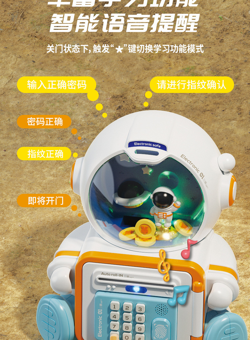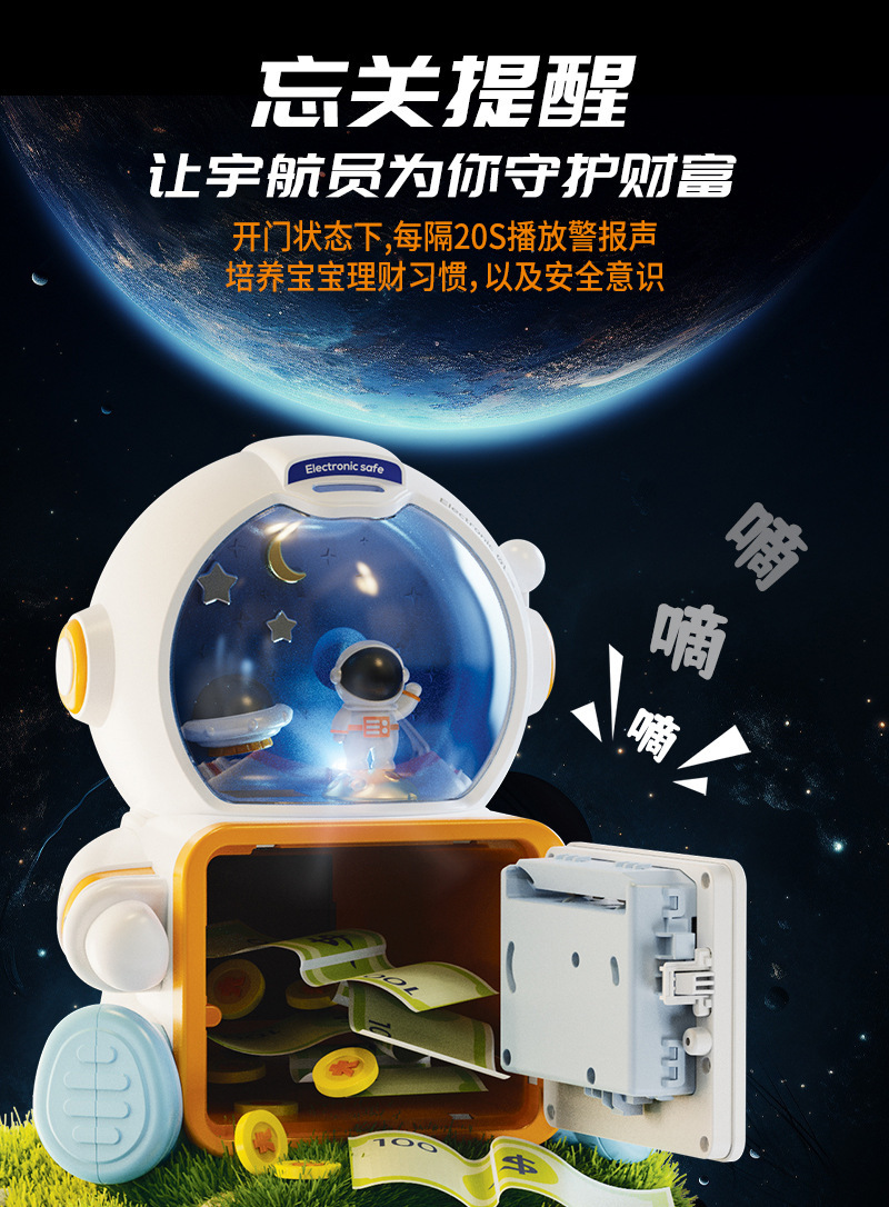 新型宇宙飛行士の貯金箱は男の子と女の子のパスワードを取ることができます。