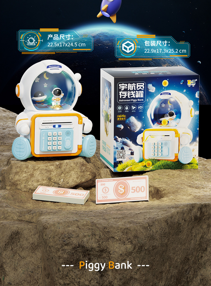 出入金可能な国境を越える貯金箱、男の子も女の子も使える宇宙飛行士のパスワード付き貯金箱、女の子へのプレゼント、コイン投入式