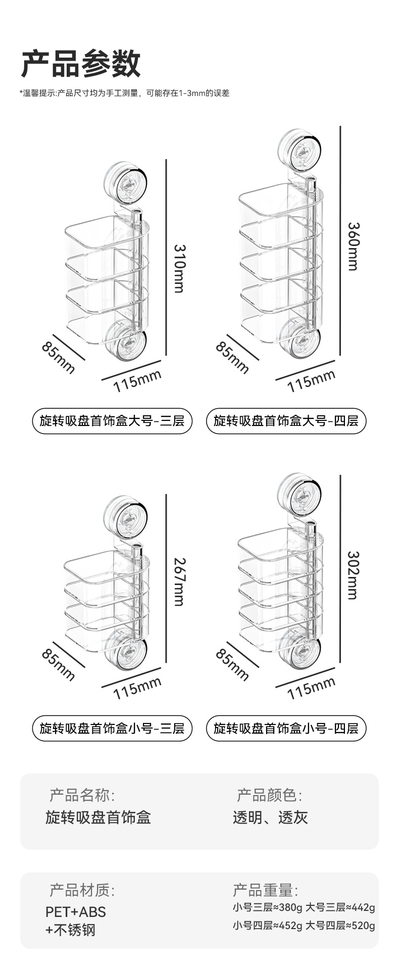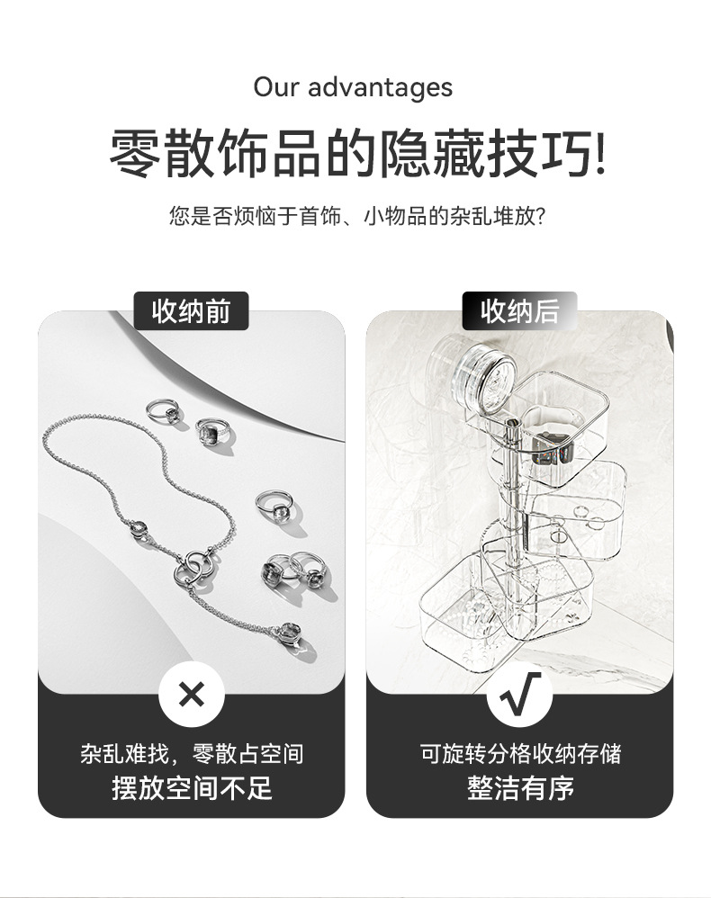 旋转首饰收纳盒高级感吸盘饰品收纳耳饰耳钉戒指项链梳妆台首饰盒