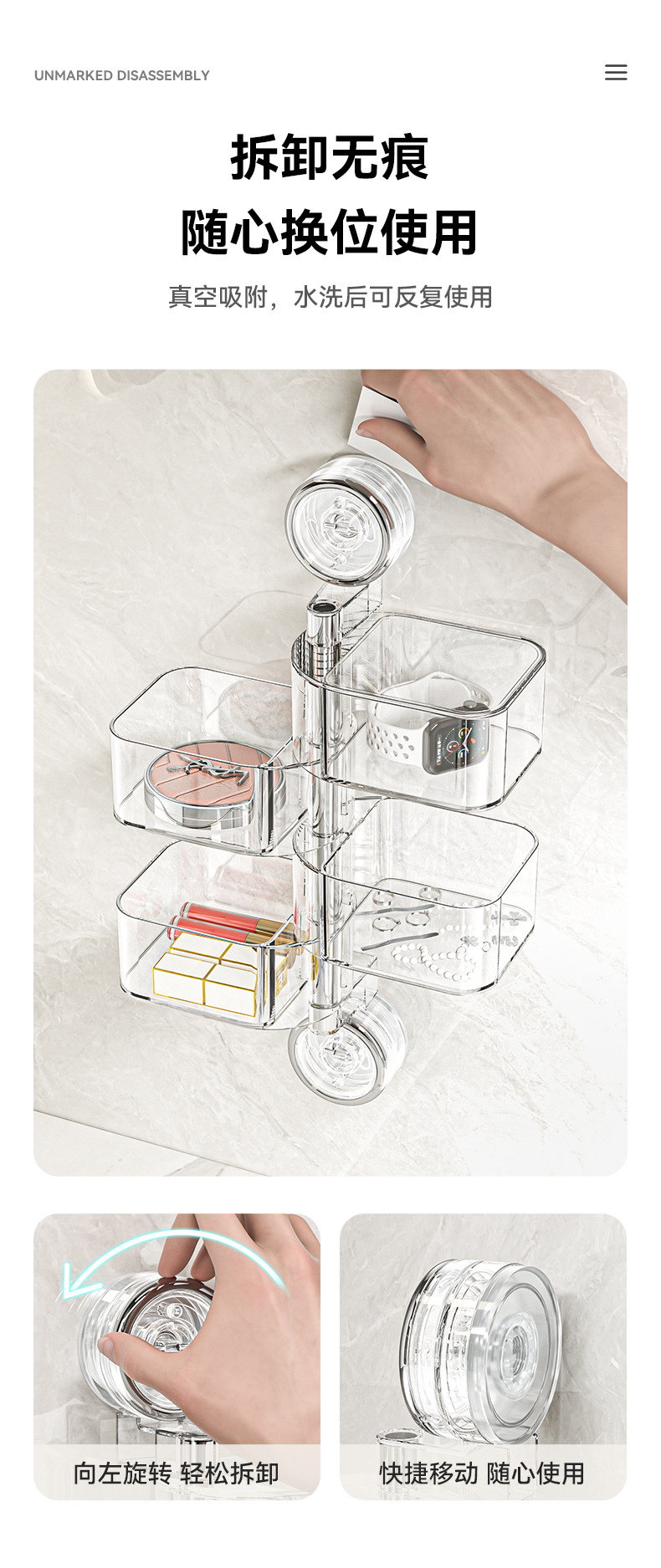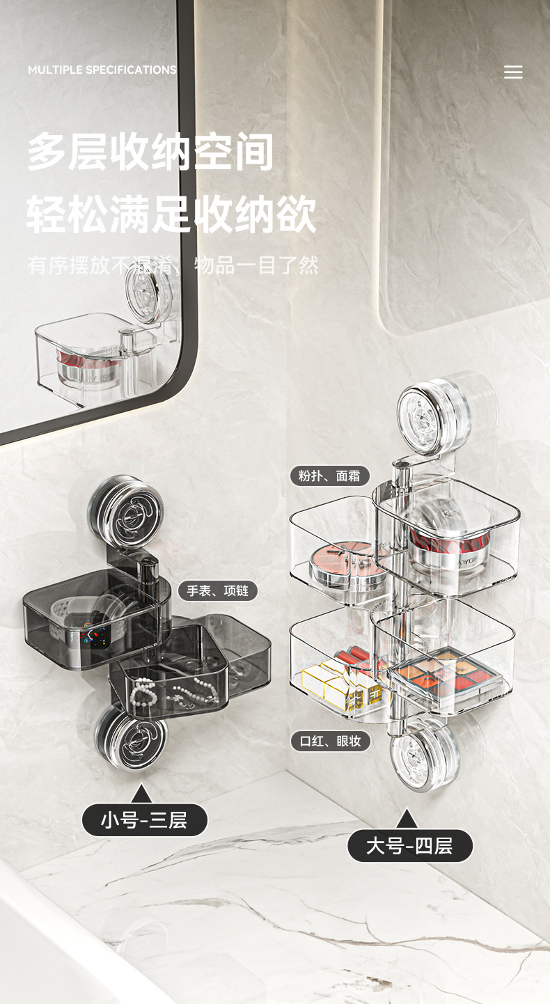 ヘアピン、ヘアバンド、ゴムバンド、イヤリング、ヘアアクセサリー収納ボックス、多層吸盤、回転ジュエリーボックス、壁掛けバスルーム