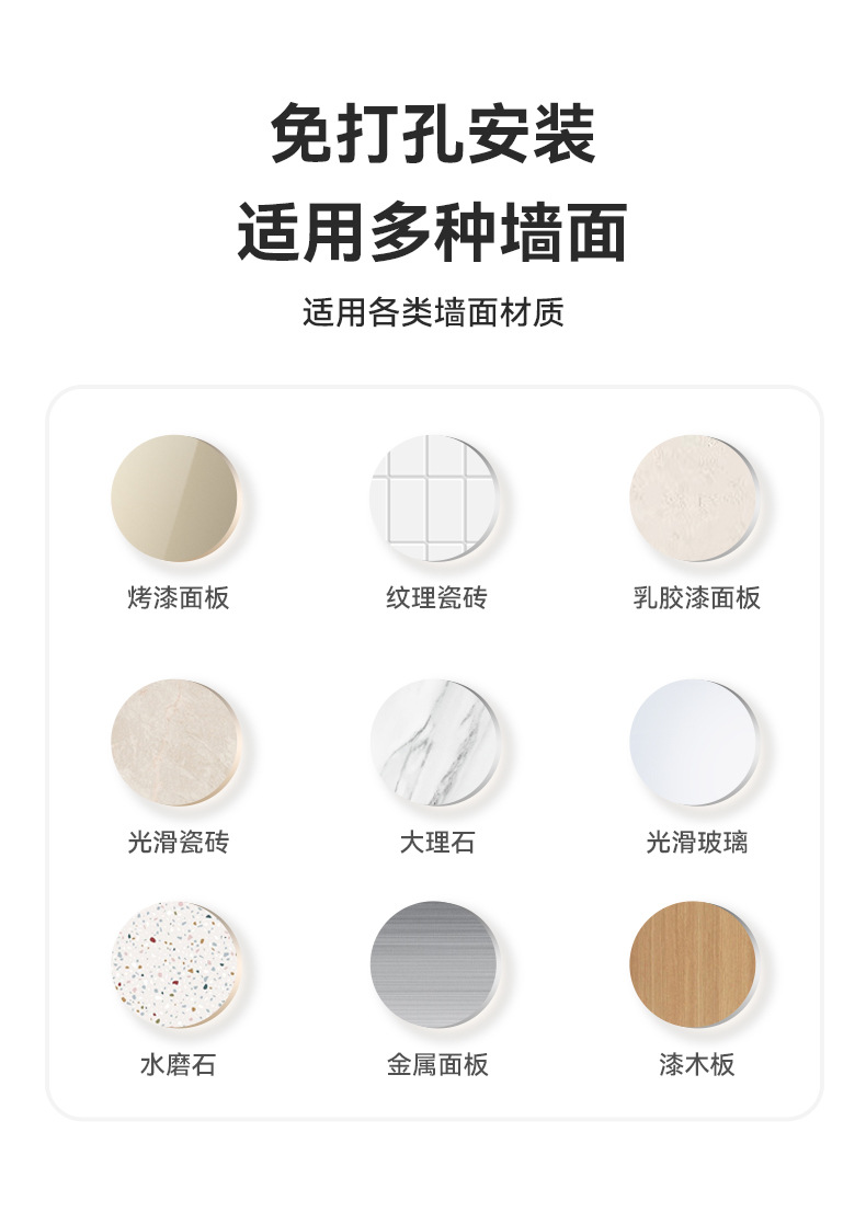 バスルーム収納ボックス、穴あけ不要、バスルーム用フェイスタオル、化粧品、小物収納、壁掛け化粧台収納ラック