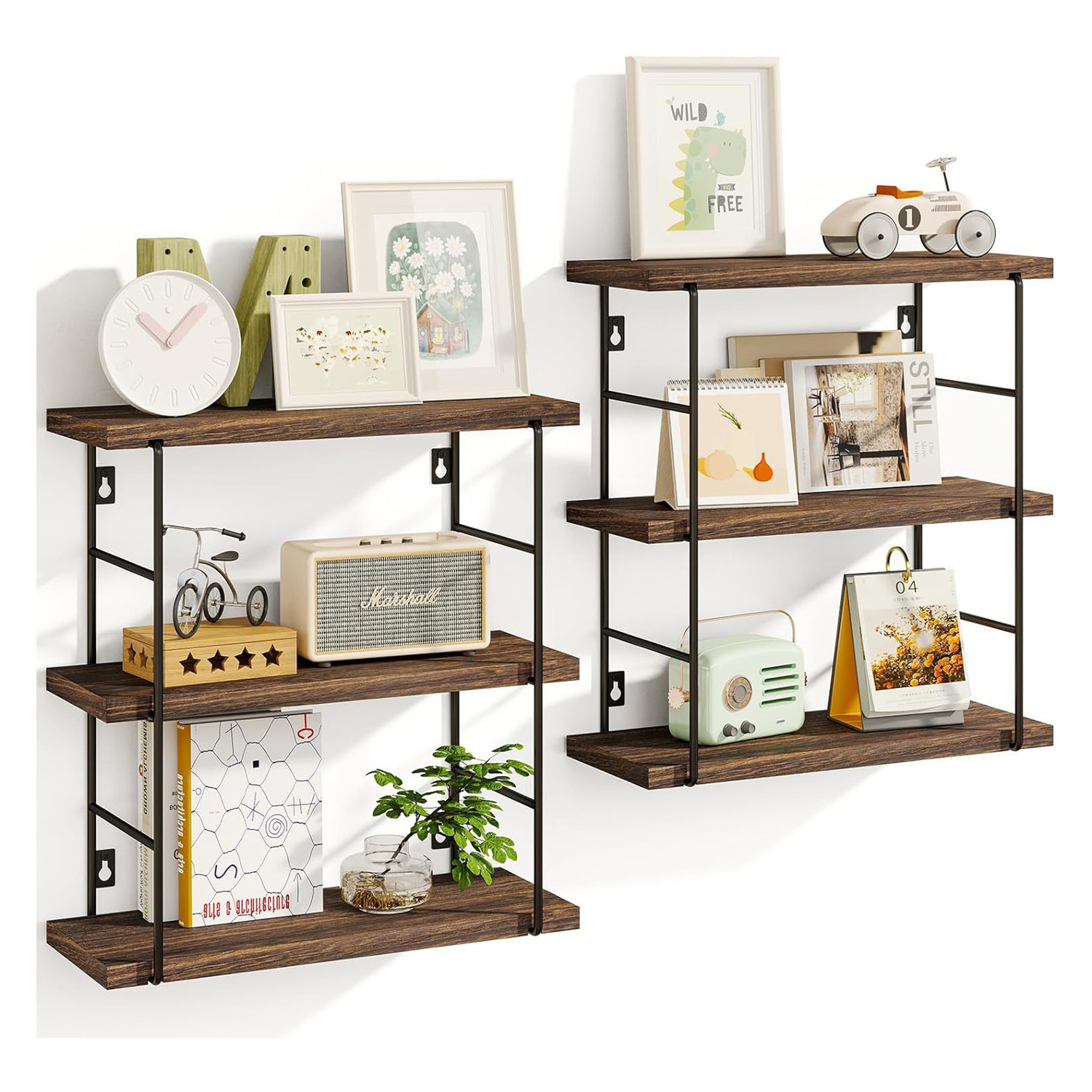 新しい 2-in-1 吊り下げ木製本棚フローティングシェルフ収納ラックリビングルーム書斎書籍雑誌新聞収納ラック