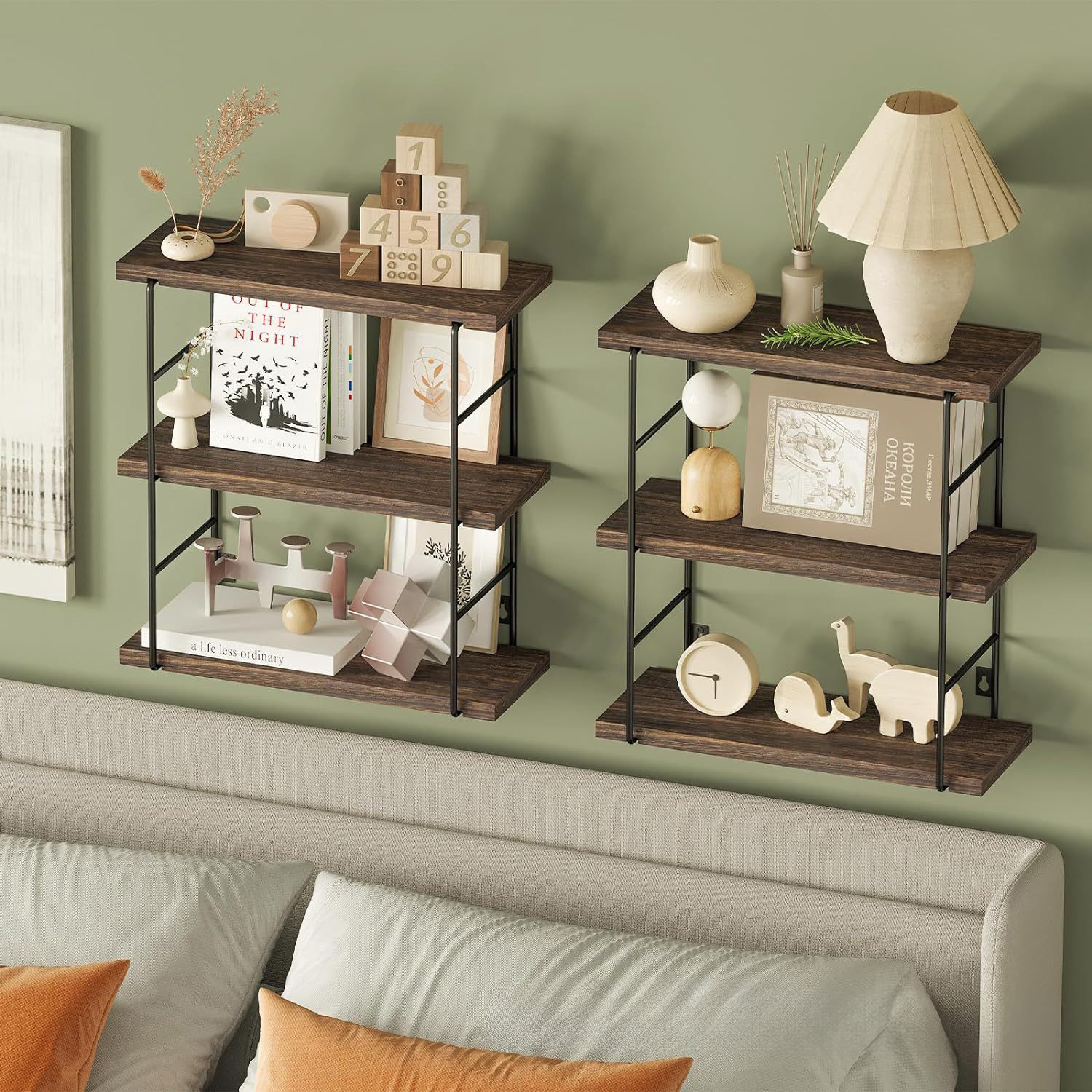 国境を越えた壁の棚リビングルームのベッドの頭の壁掛け式収納棚の壁面の一字棚の収納棚