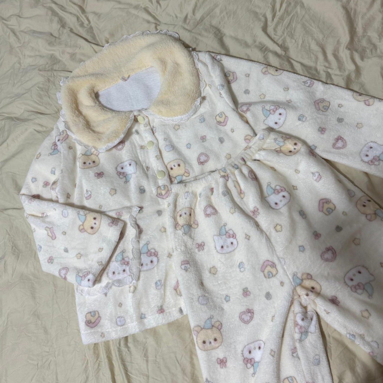 轻松熊睡衣套装秋冬新款可爱卡通kt娃娃领加绒长袖长裤家居服批发