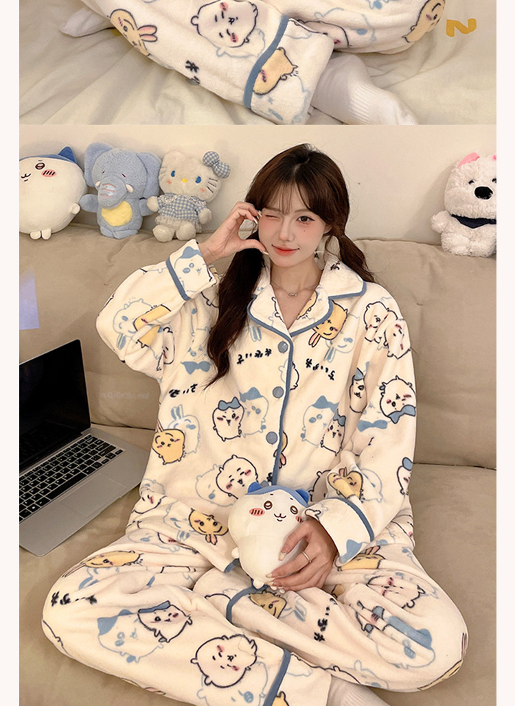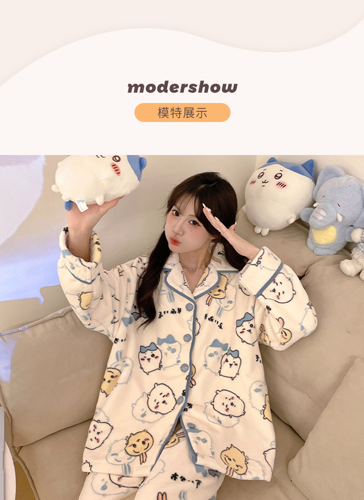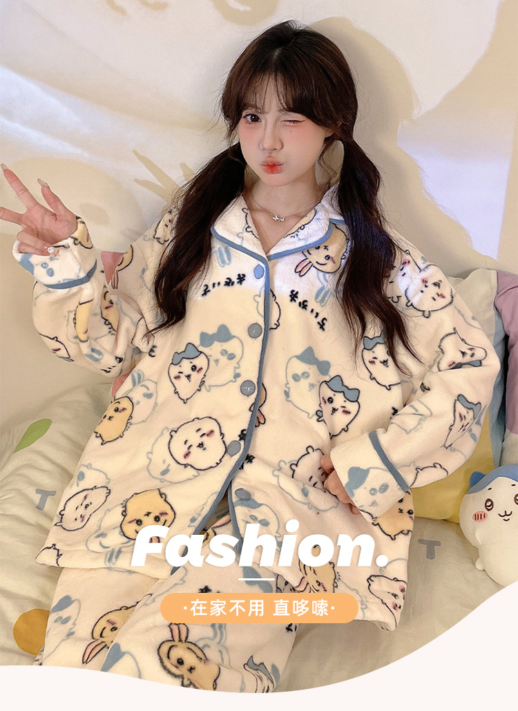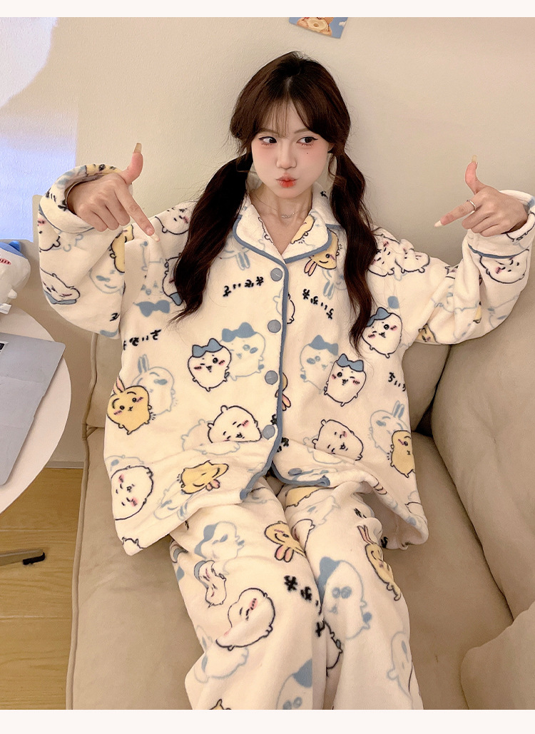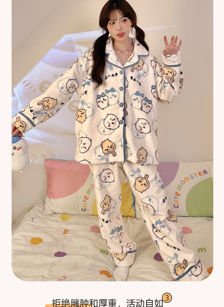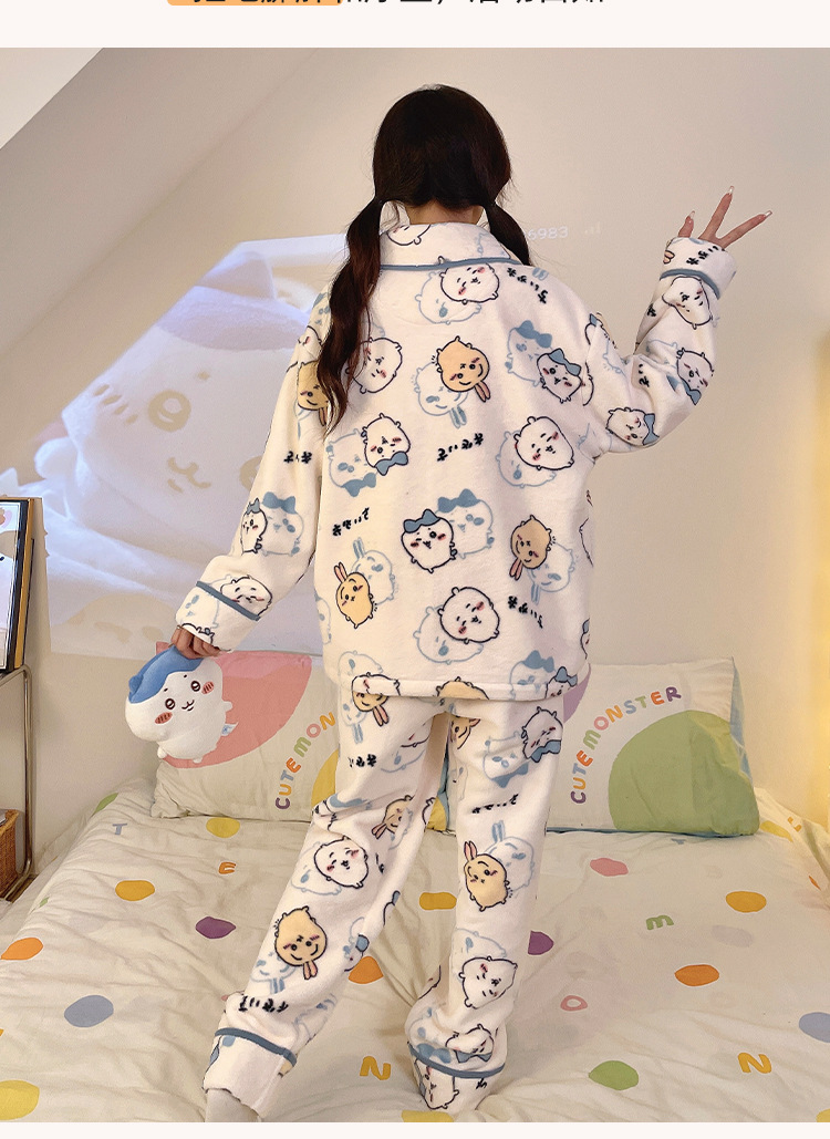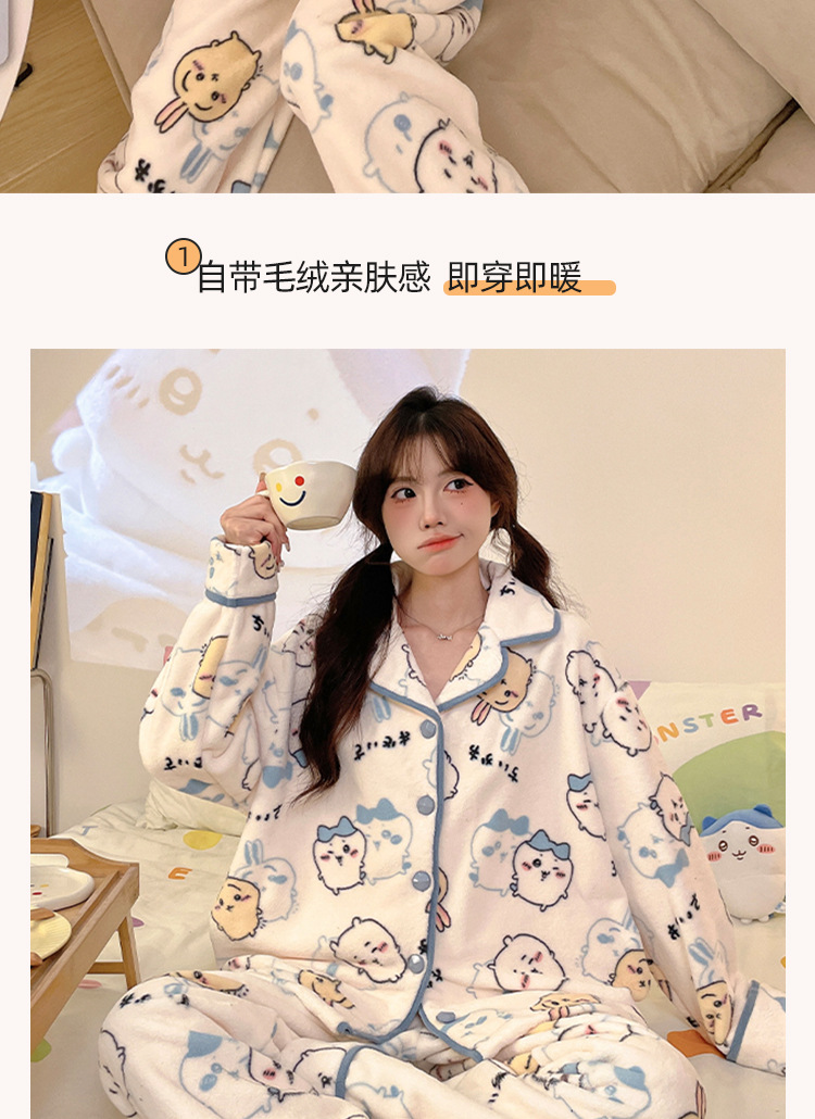 chiikawa睡衣女款珊瑚绒加厚可爱乌萨奇吉伊小八套装家居服秋冬季