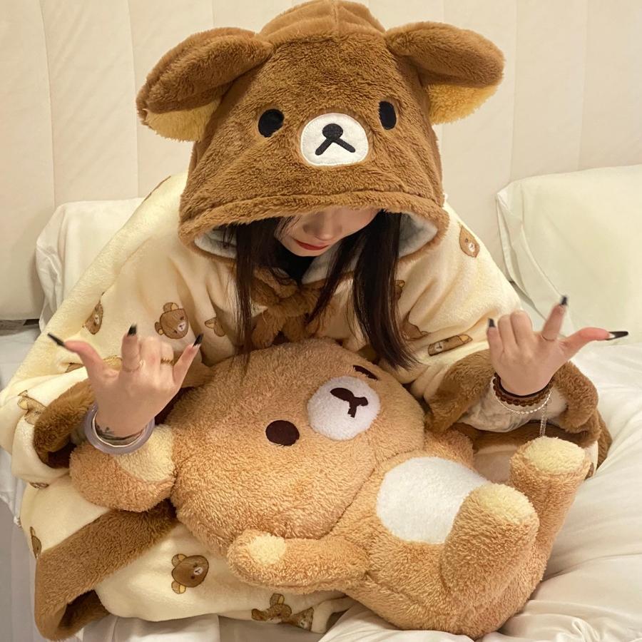 暖呼呼轻松熊斗篷睡衣套装2025春季新款可爱软萌保暖家居服午睡毯