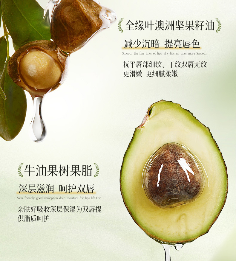 Bei Lingmei アボカド保湿リップバーム 3.5g 保湿プライマー、角質除去、リップライン軽減、秋冬スキンケアリップバーム