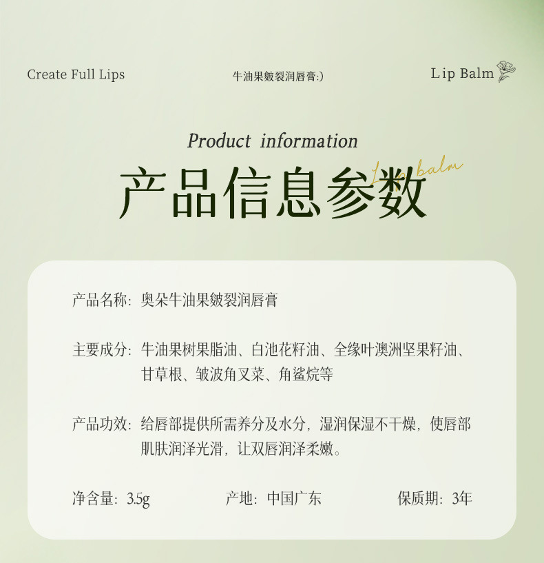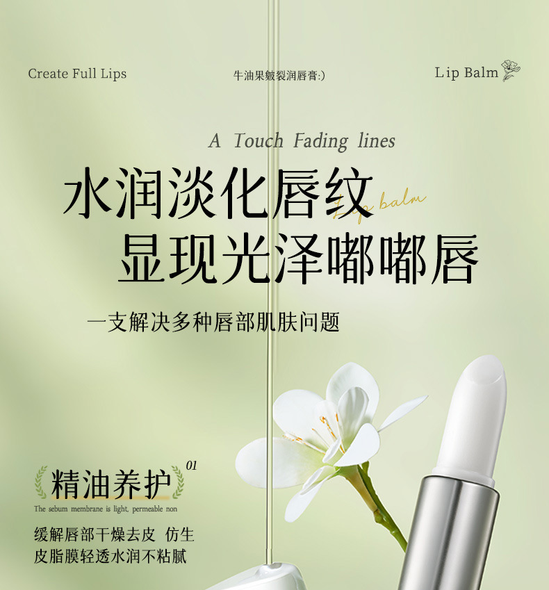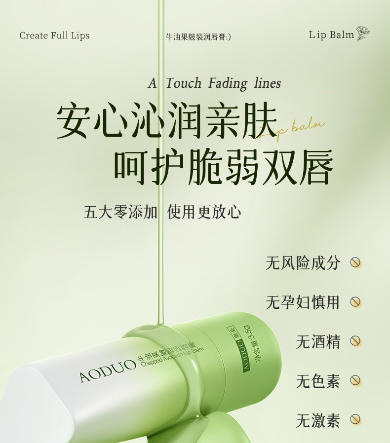 奥朵牛油果皴裂润唇膏防干裂淡化唇纹保湿滋润补水口红打底润唇膏