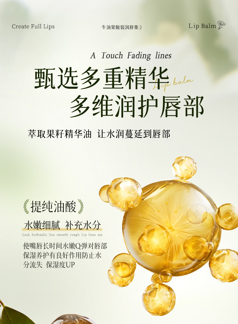 奥の牛の油の果実はひび割れて唇を潤します。保湿は乾燥を防ぎます。