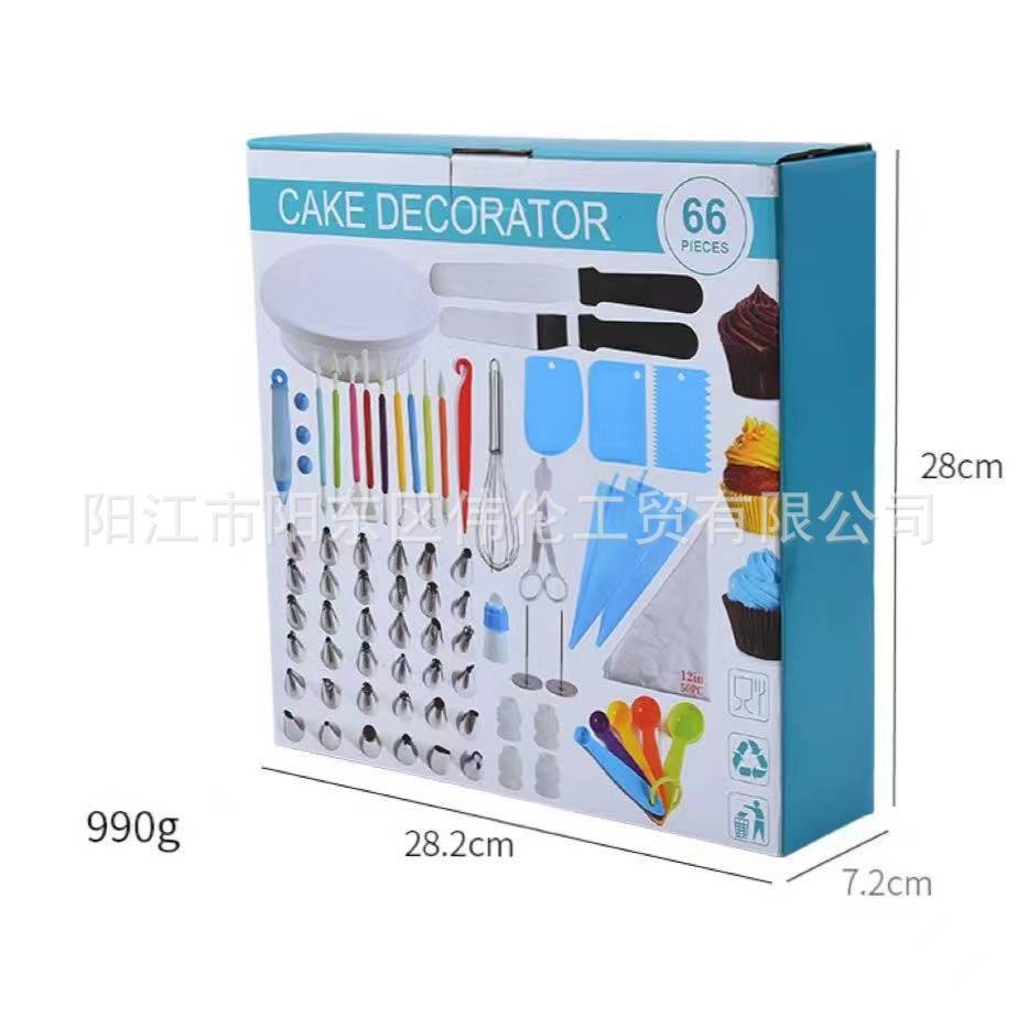 跨境亚马逊速卖通66件套蛋糕转台套装裱花烘焙工具塑料裱花嘴批发