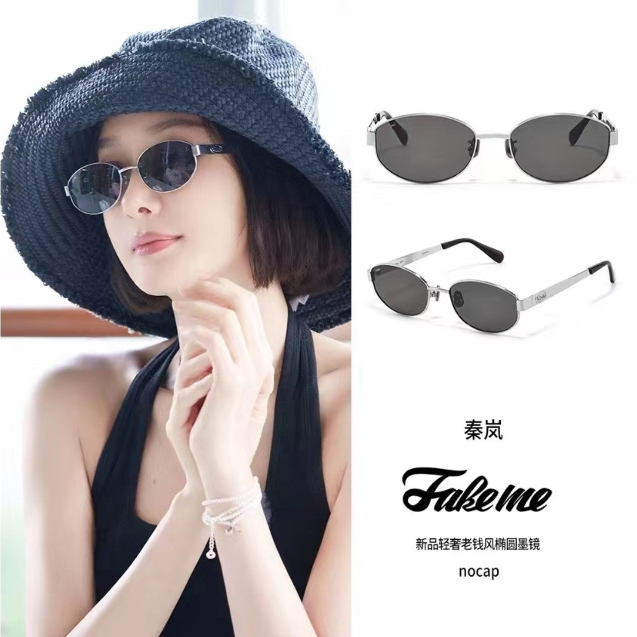 Fakeme25新品楕円金属シルバーフレームサングラス日よけサングラス日焼け止め紫外線防止小顔レトロ