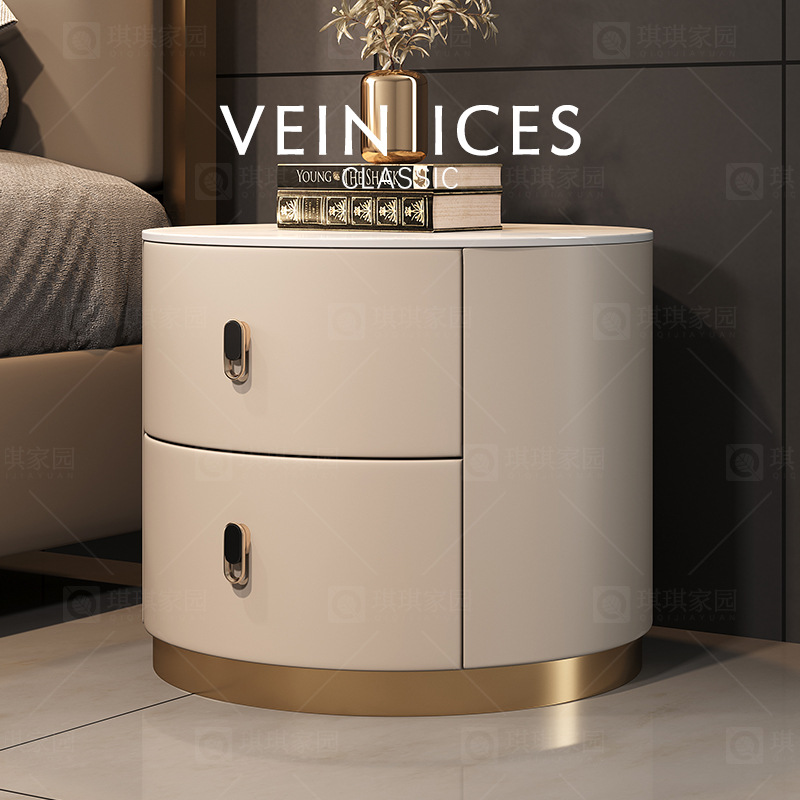 2022年新型円形ベッドサイドキャビネット現代シンプル軽贅沢insベッドサイドキャビネット寝室実木岩板収納